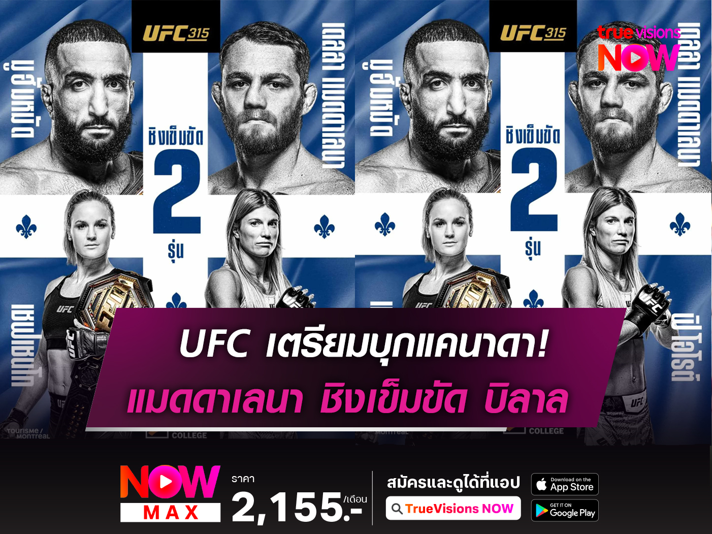 สำหรับศึก UFC315 : MUHAMMAD VS DELLA MADDALENA จะระเบิดศึก ณ สังเวียน ,Bell Centre ,มอนทรีออล ประเทศแคนาดา ในวันอาทิตย์ที่ 11 พฤษภาคม นี้ คู่หลักของรายการเริ่มเวลา 09.00 น. ตามเวลาประเทศไทย โดยแฟนหมัดมวยชาวไทยติดตามชมได้ทางช่อง TRUE SPORTS HD3 (668)