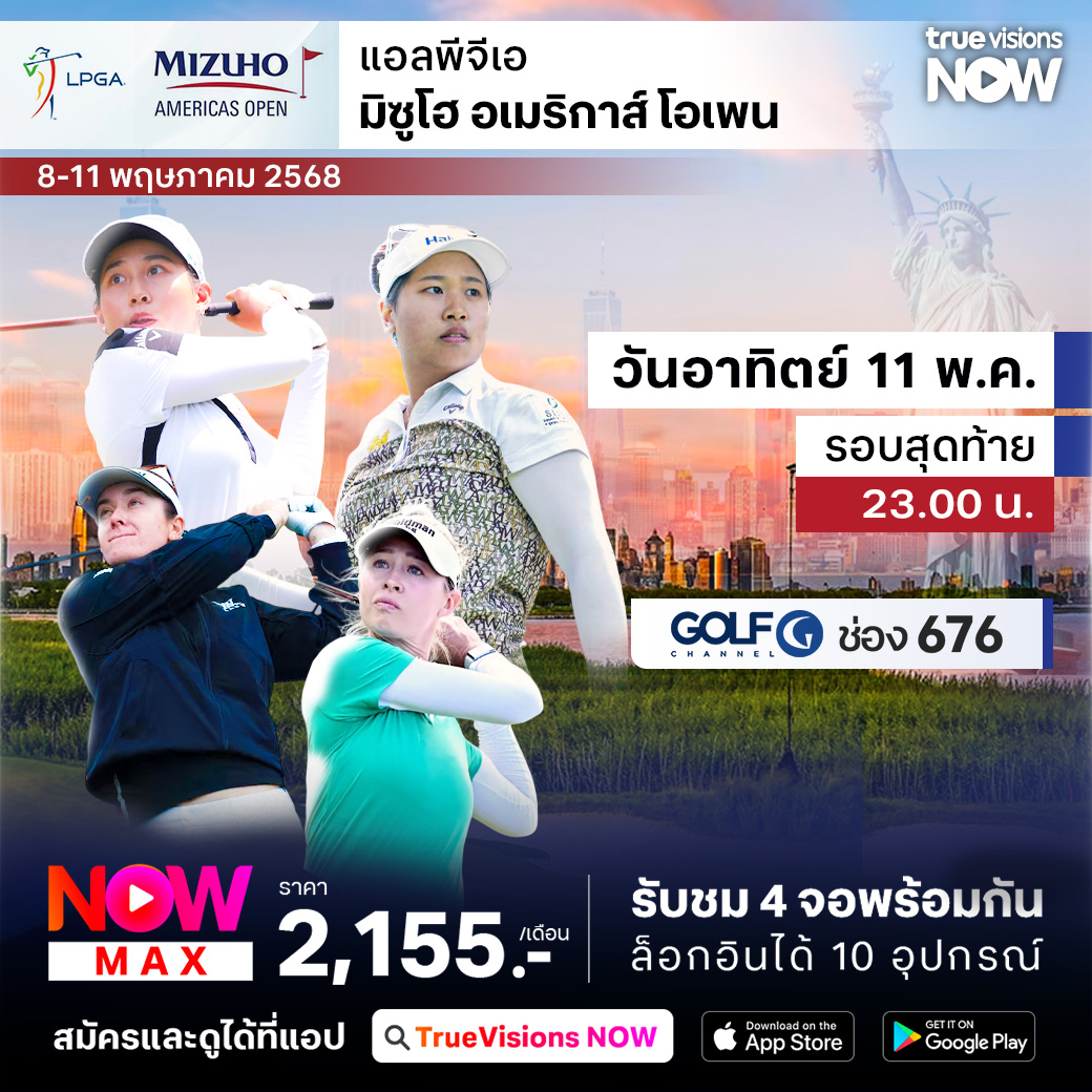 กอล์ฟหญิง แอลพีจีเอ ทัวร์ สัปดาห์นี้ ไปติดตามกันต่อกับรายการ มิซูโฮ อเมริกาส์ โอเพ่น ที่สังเวียน ลิเบอร์ตี้ เนชั่นแนล กอล์ฟ คลับ ใน เจอร์ซี่ ซิตี้ รัฐนิวเจอร์ซี่ แถมปีนี้เงินรางวัลรวมพุ่งสูงถึง 3,000,000 เหรียญสหรัฐฯ ส่งใจเชียร์โปรสาวไทยสู้กับเหล่าโปรระดับโลกรายอื่นๆ ชมสด ครบทุกรอบ ที่ ทรูวิชั่นส์