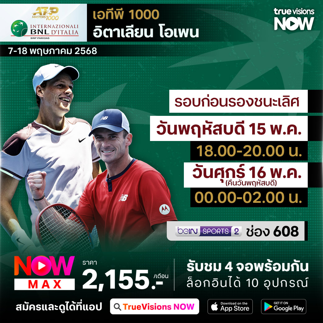 รอบรองชนะเลิศ เวลา 20.00-22.00 / 01.30-03.30 ทางช่อง True Tennis (670)