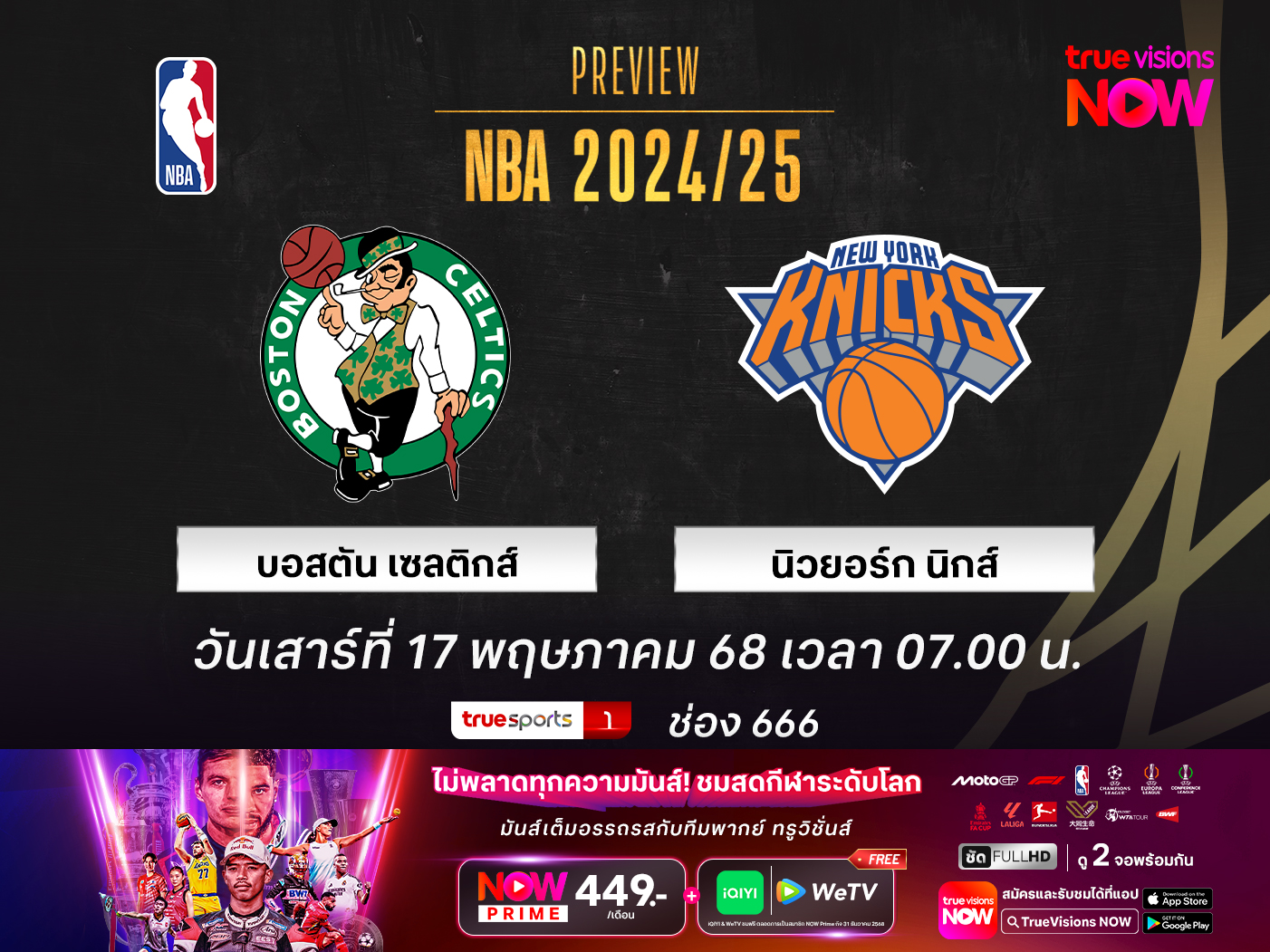 เวลา 07.00 น. วันที่ 17 พ.ค. นี้ บอสตัน เซลติกส์ @ นิวยอร์ก นิกส์ (เกม 6) ถ่ายทอดสดทางช่อง ทรูสปอร์ตส์1 (666)