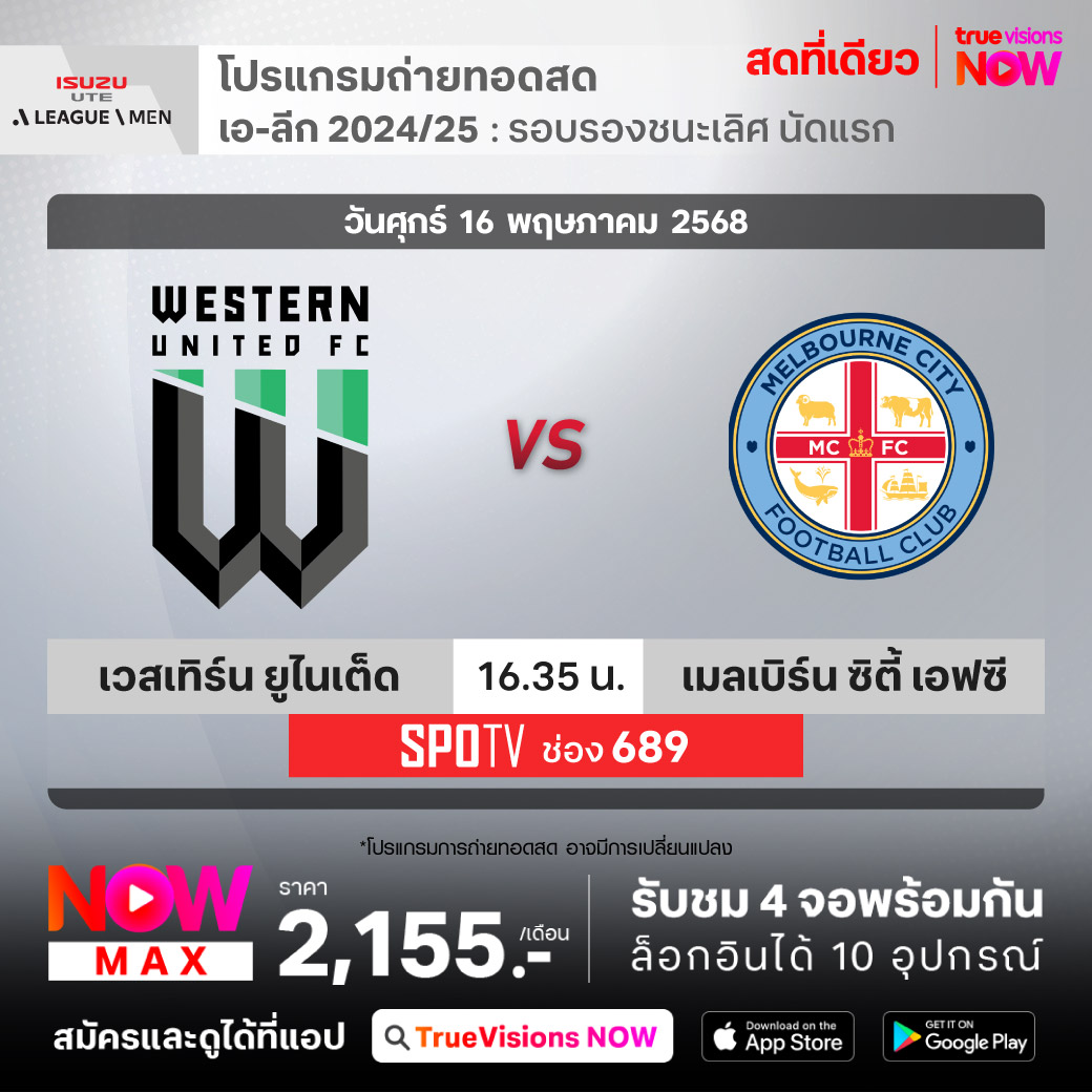 Western United vs Melbourne City FC เวลา 16.35-18.35 ทางช่อง SPOTV (689)