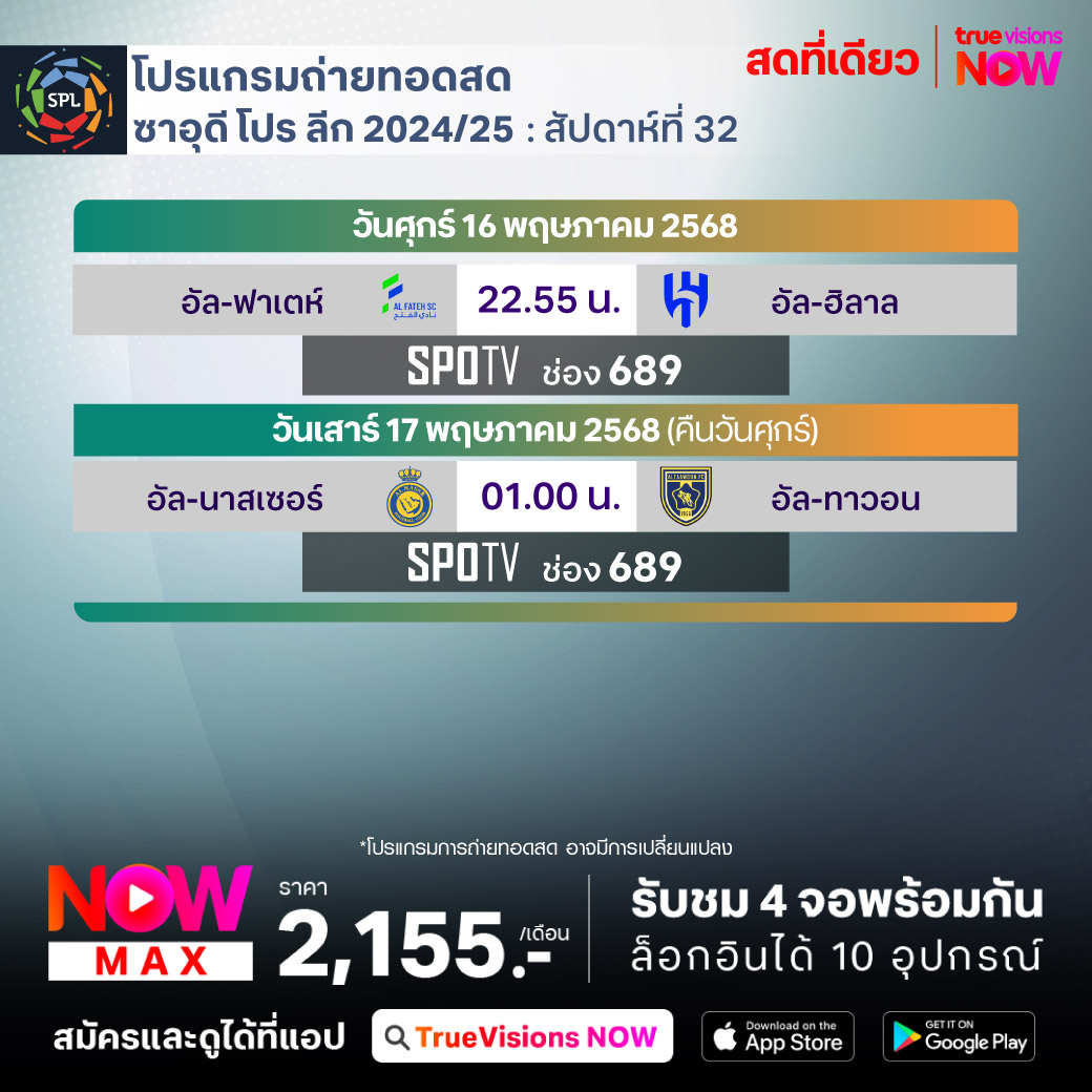 Al-Nassr vs Al-Taawoun เวลา 01.00-03.00 ทางช่อง SPOTV (689)