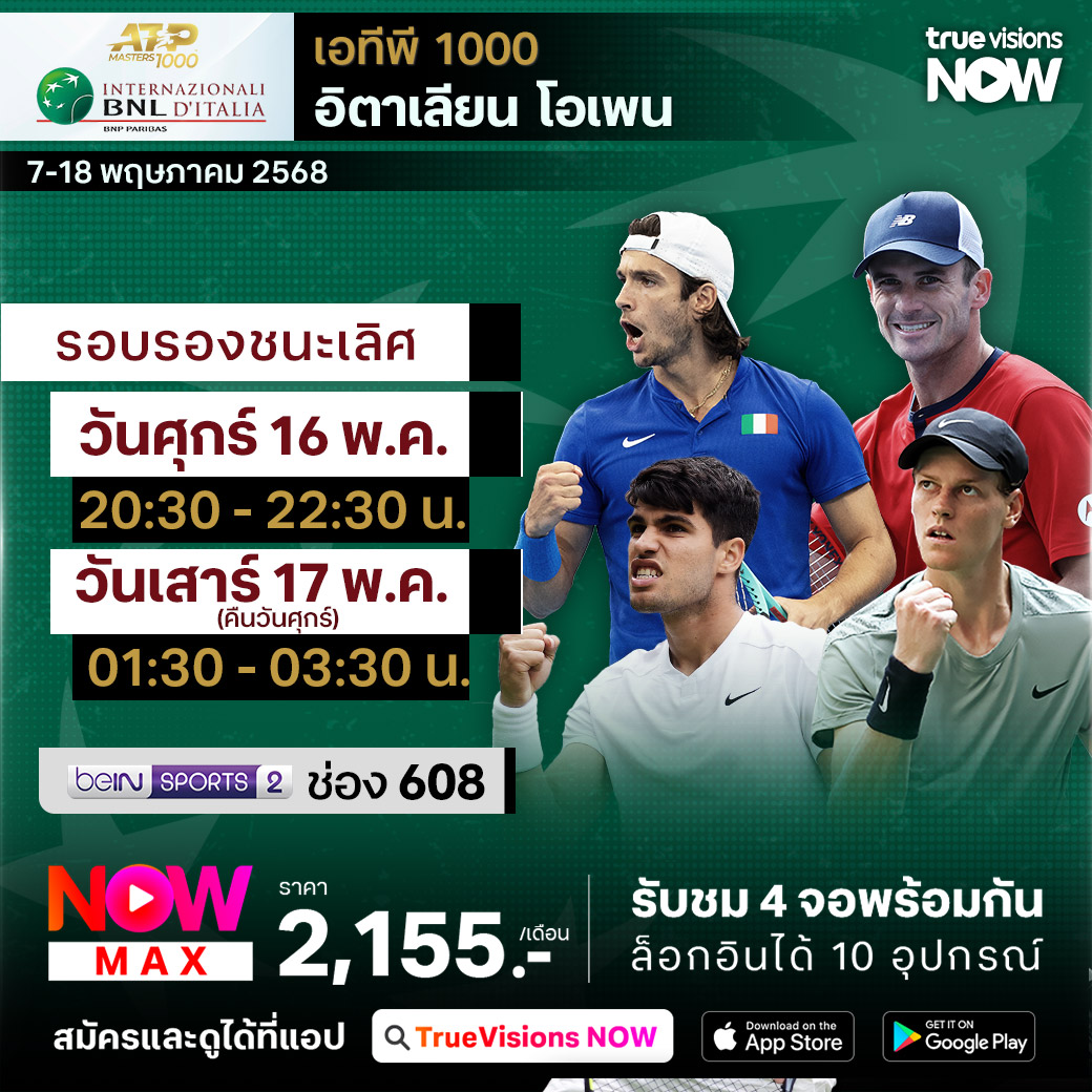 ฤดูกาลแข่งขันคอร์ทดินกำลังเข้าสู่ช่วงเข้มข้น กับการแข่งขันเทนนิสชาย เอทีพี ทัวร์ รายการใหญ่ ระดับ ATP 1000 จากกรุงโรมประเทศอิตาลี ในรายการ อิตาเลียน โอเพ่น ซึ่งรายการนี้จะเป็นรายการที่ทดสอบความสามารถผู้เล่น ก่อนเข้าสู่การแข่งขัน