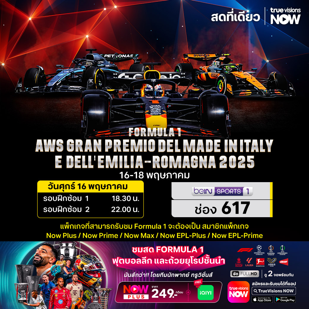 ศึกฟอร์มูล่า วัน เดินทางมาถึงช่วงสำคัญของฤดูกาลแล้ว กับการแข่งขันสนามที่ 7 และเป็นสนามแรกในแผ่นดินยุโรป ที่จะเปิดศึกสู้กันอย่างไม่มีใครยอมใครยาวไปจนถึงเดือนกันยายน สัปดาห์นี้ ประเดิมสนามในยุโรปกันด้วยรายการ เอมิเลีย โรมันญ่า กรังด์ปรีซ์ ที่สังเวียน เอนโซ่ เฟอร์รารี่ อินเตอร์เนชั่นแนล เซอร์กิต ประเทศอิตาลี จับตาดูการลุ้นแชมป์ของทีมยักษ์ใหญ่ ใครจะได้สะใจ ใครจะผิดหวัง ชมสด เอ็กซ์คลูซีฟ ที่เดียวที่ ทรูวิชั่นส์