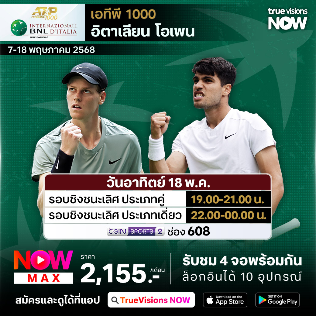 วันแรก เวลา 18.00-20.00 ทางช่อง True Tennis (670)