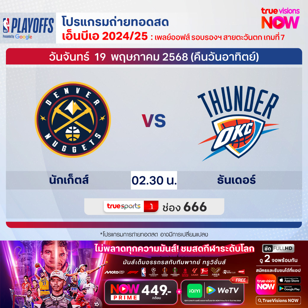วันจันทร์ 19 พ.ค. Nuggets vs Thunder เวลา 02.30 ทางช่อง TS 1 (666)