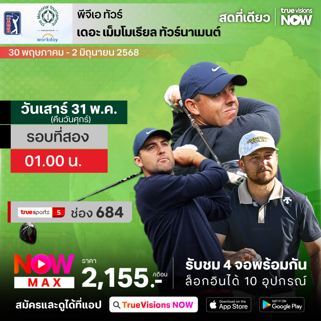 กอล์ฟ พีจีเอ ทัวร์ ฤดูกาล 2025 สัปดาห์นี้ พลาดไม่ได้กับรายการระดับ ซิกเนเจอร์ อีเวนท์ เดอะ เมมโมเรี่ยล ทัวร์นาเมนต์ ที่จัดโดยตำนานนักกอล์ฟที่ยิ่งใหญ่อย่าง แจ็ค นิคลอส ที่สนาม เมียร์ฟิลด์ วิลเลจ กอล์ฟ คลับ ในเมืองดับลิน รัฐโอไฮโอ ประเทศสหรัฐอเมริกา ชิงเงินรางวัลมหาศาล 20,000,000 เหรียญสหรัฐฯ ร่วมลุ้นกันว่าใครจะเป็นแชมป์ในปีนี้ ชมสด เอ็กซ์คลูซีฟ ที่เดียวที่ ทรูวิชั่นส์