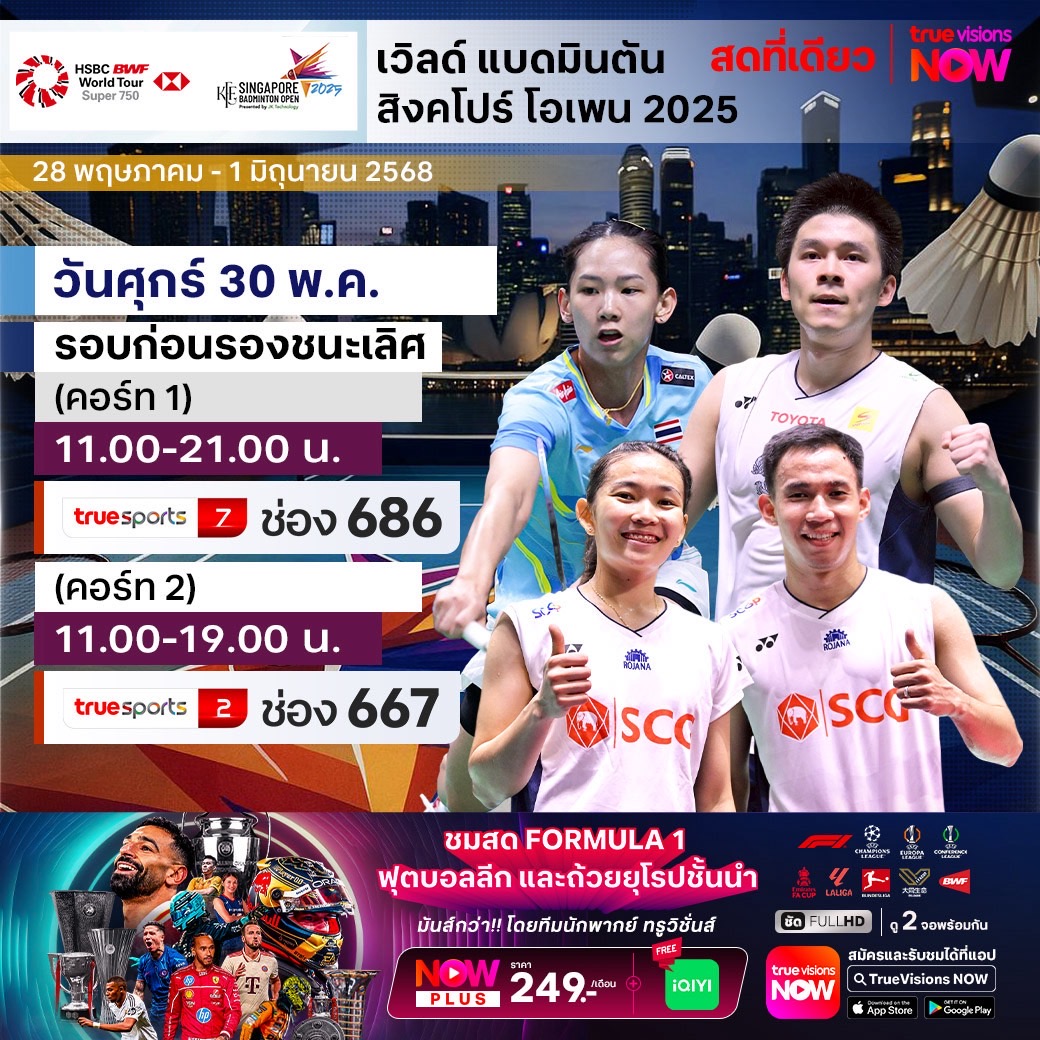 แบดมินตันเก็บคะแนนสะสมโลก สัปดาห์นี้ มีนัดดวลกันในรายการ สิงคโปร์ แบดมินตัน โอเพ่น 2025 ความมันส์ระดับ เวิลด์ ทัวร์ ซูเปอร์ 750 นักกีฬาระดับโลกตบเท้าเข้าร่วมชิงแชมป์กันคับคั่ง ร่วมส่งใจเชียร์ทีมแบดมินตันไทย สู้เพื่อคว้าชัยเหนือคู่แข่ง ชมสด จุใจ เอ็กซ์คลูซีฟ ที่เดียวที่ ทรูวิชั่นส์