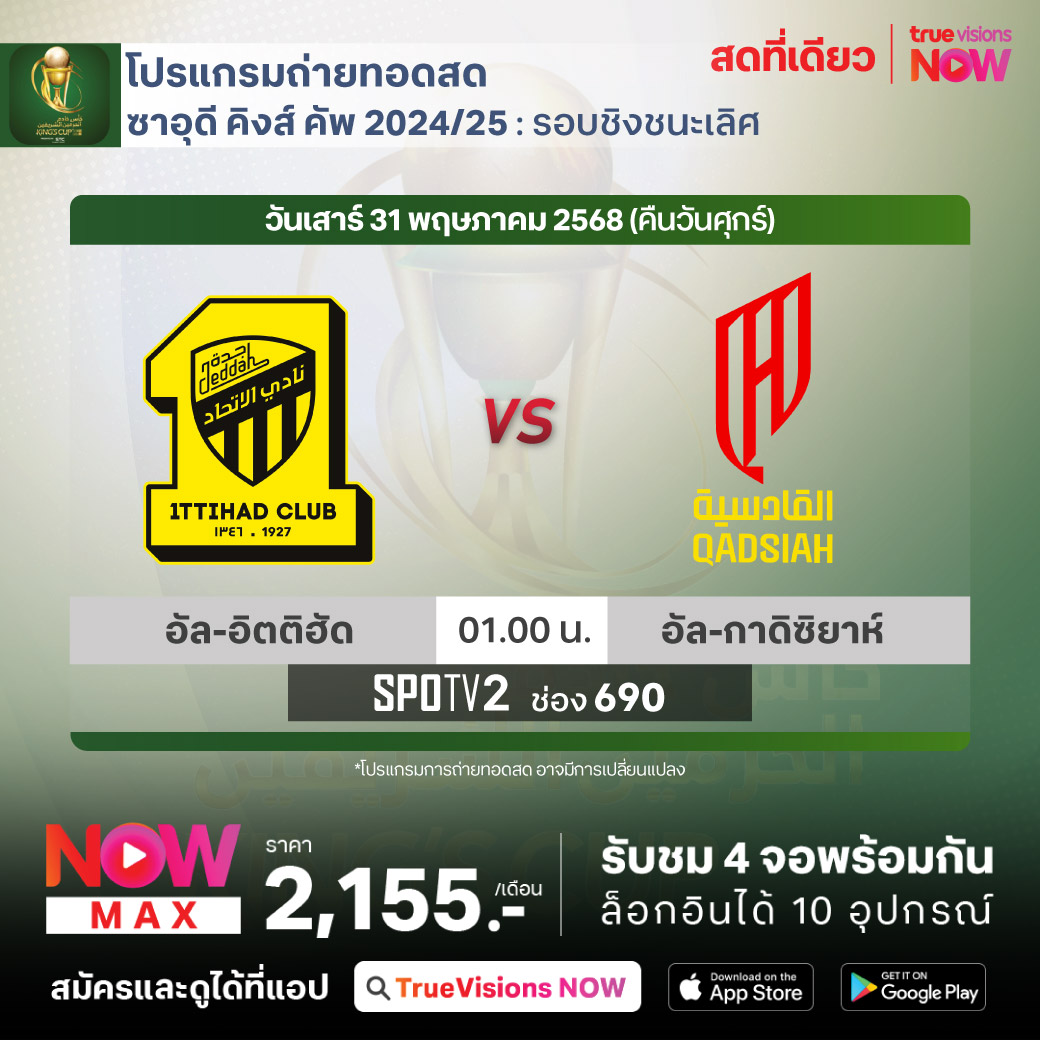 Al-Ittihad vs Al-Qadisiyah เวลา 01.00-03.00 ทางช่อง SPOTV2 (690)
