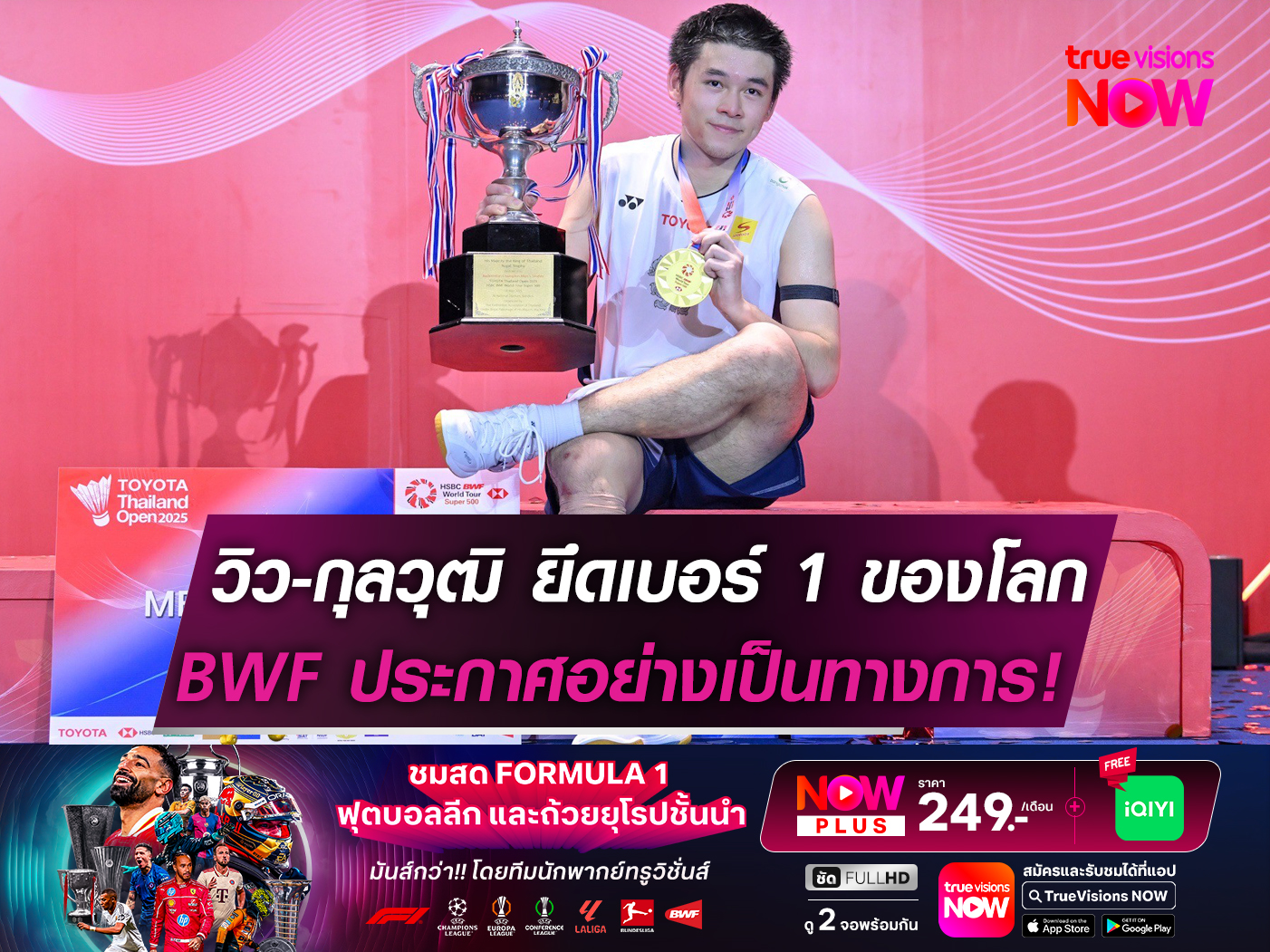 "วิว" กุลวุฒิ วิทิตศานต์ ยอดนักตบลูกขนไก่ขวัญใจชาวไทย ผงาดขึ้นรั้ง "มืออันดับ 1 ของโลก" อย่างเป็นทางการ! จากการประกาศอันดับโลกล่าสุดของ สหพันธ์แบดมินตันโลก(BWF) เมื่อวันที่ 3 มิถุนายนที่ผ่านมา