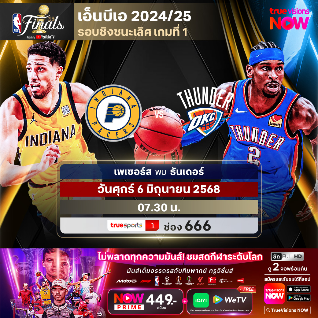 วันศุกร์ 6 มิ.ย. Pacers Vs Thunder เวลา 07.30 ทางช่อง TS 1 (666)