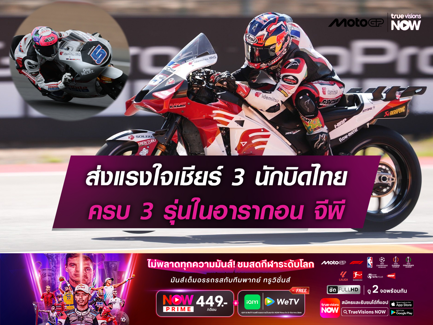 ส่งแรงใจเชียร์ 3 นักบิดชาวไทยใน “กรังด์ปรีซ์” ออฟ อารากอน” เริ่มด้วย “ก๊องส์ ธัชกร” และ “ชิพ นครินทร์” บิดที่ “ก้อง สมเกียรติ” ติดตามถ่ายทอดสดส่งตรงจากประเทศสเปน ครบจบทุกรุ่น