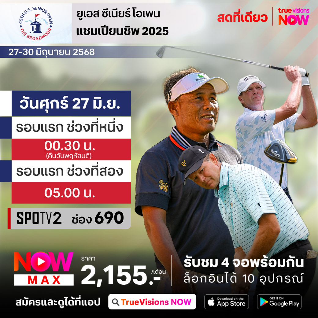เป็นแฟนใครก็ต้องตามเชียร์ เพราะสัปดาห์นี้ โปรรุ่นใหญ่ประสบการณ์สูง ที่ผ่านความสำเร็จมามากมาย นัดมารวมตัวกันแข่งขันและลุ้นแชมป์รายการใหญ่ระดับเมเจอร์ ของแชมเปี้ยนส์ ทัวร์ กับรายการ ยูเอส ซีเนียร์ โอเพ่น แชมเปี้ยนชิพ ครั้งที่ 45 ที่สนาม บรอดมัวร์ กอล์ฟ คลับ ใน โคโลราโด้ สปริงส์, รัฐโคโลราโด้ ประเทศสหรัฐอเมริกา ชิงเงินรางวัลรวม 4 ล้านเหรียญสหรัฐฯ ร่วมลุ้นกันว่าใครจะคว้าแชมป์ปีนี้ไปครอง ชมสด เอ็กซ์คลูซีฟ ครบทุกรอบ ที่เดียวที่ ทรูวิชั่นส์