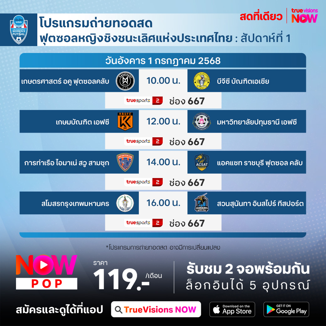 เกษมบัณฑิต เอฟซี พบ มหาวิทยาลัยปทุมธานี เอฟซี เวลา 12.00 ทางช่อง TS 2 (667)