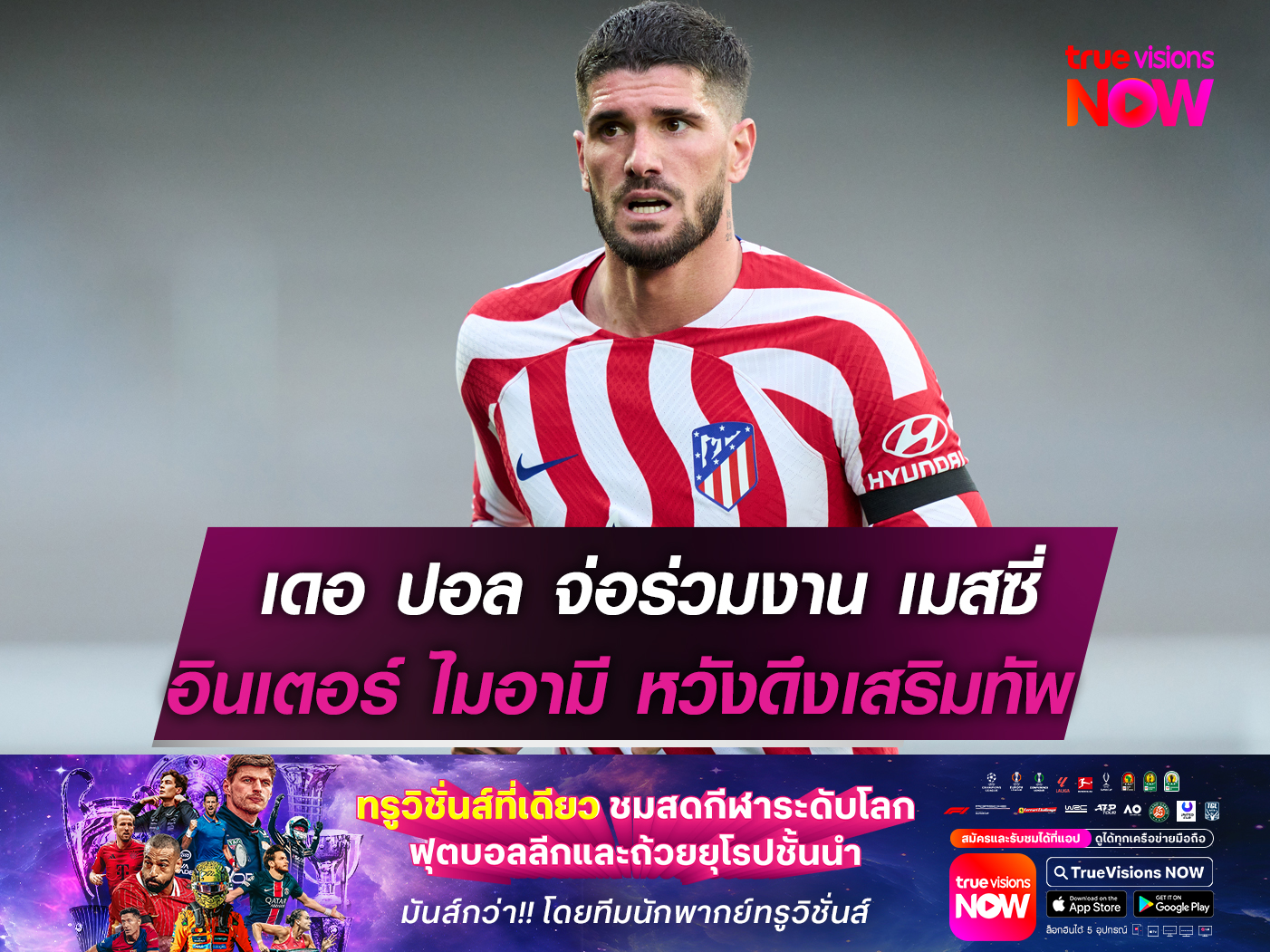 โรดริโก เดอ ปอล กองกลางจอมแกร่งของ "ตราหมี" แอตเลติโก มาดริด ทีมดังแห่ง ลา ลีกา สเปน มีลุ้นได้ย้ายร่วมงานกับ ลิโอเนล เมสซี สตาร์รุ่นพี่ชาวอาร์เจนไตน์ หลังได้รับความสนใจจาก อินเตอร์ ไมอามี ในลีกสหรัฐฯ