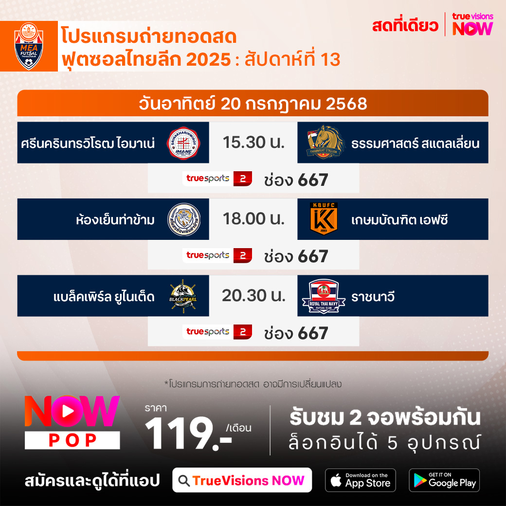 ห้องเย็นท่าข้าม คลับ พบ เกษมบัณฑิต เอฟซี เวลา 18:00 ทางช่อง TS 2 (667)