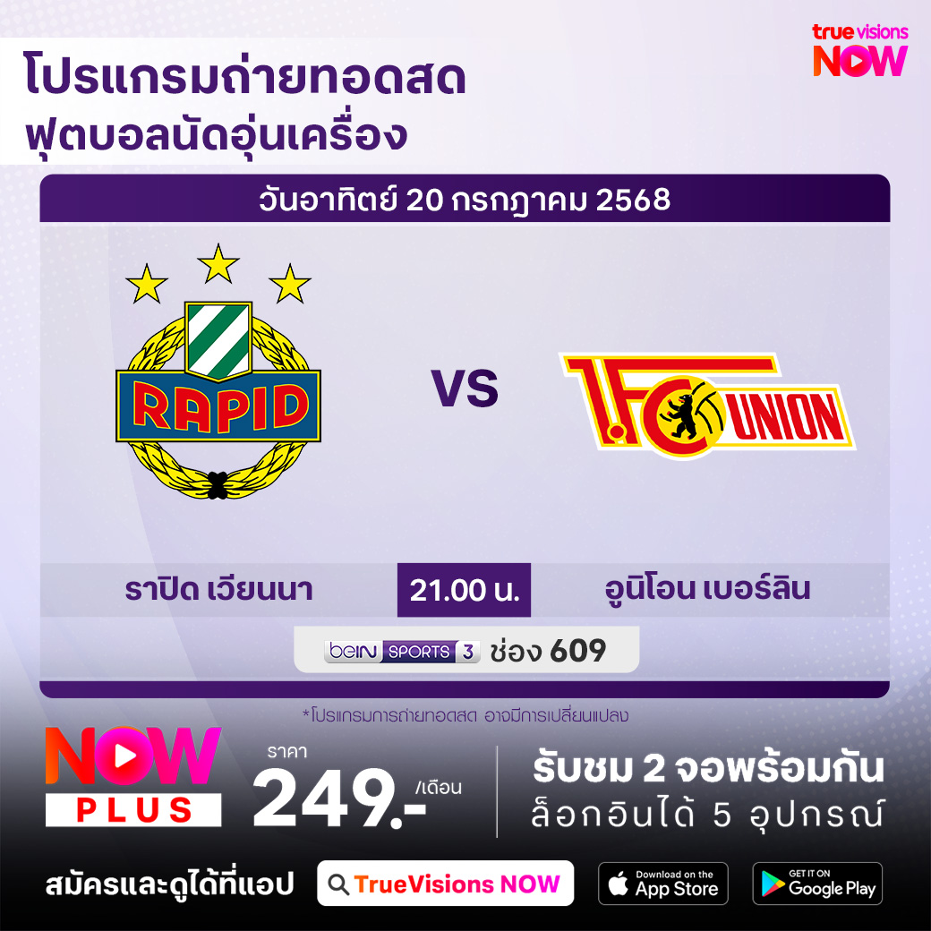 Rapid Vienna vs FC Union เวลา 21.00-23.00 ทางช่อง beIN 3 (609)