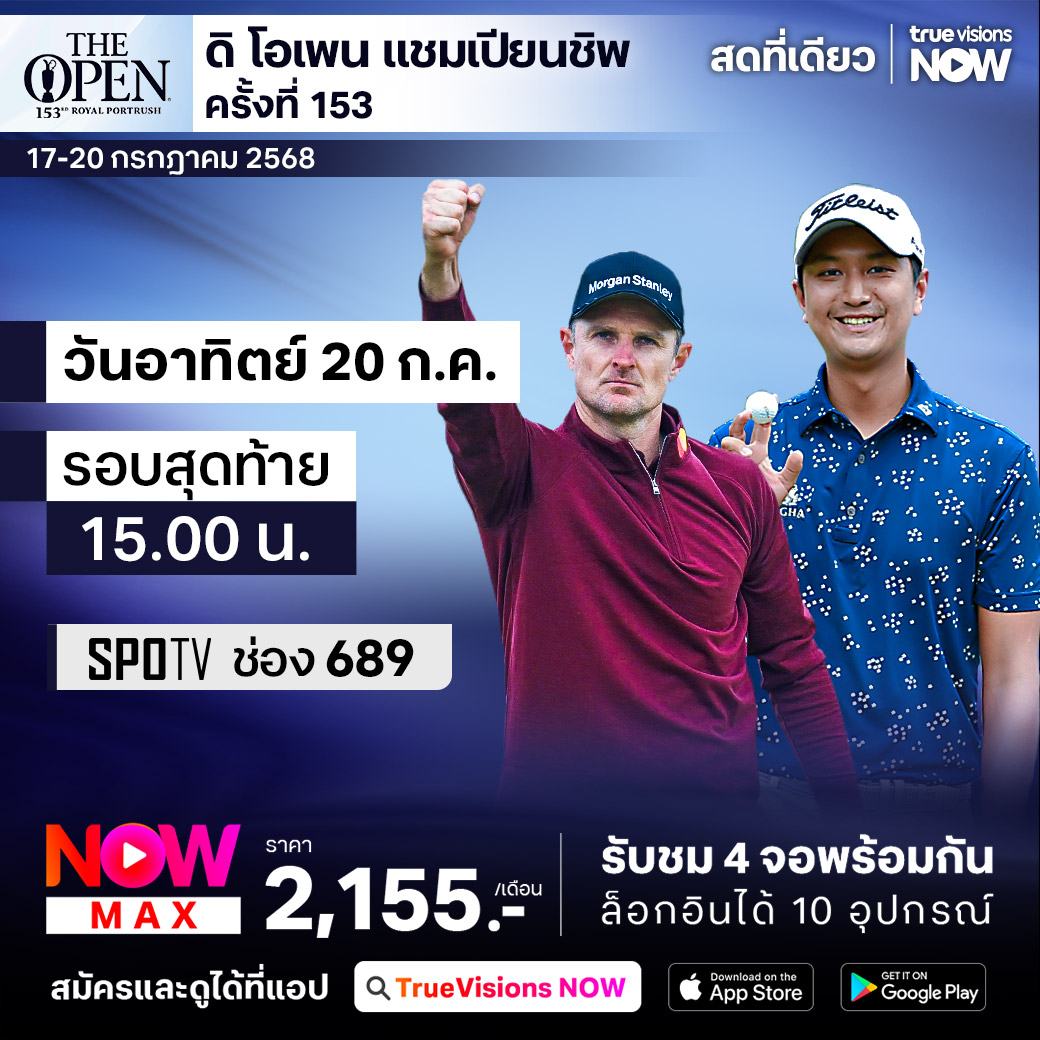 ถ้าเป็นแฟนๆ กีฬากอล์ฟ ต้องติดตามกันให้ได้ เมื่อความยิ่งใหญ่และเป็นที่สุดของตำนานของการแข่งขันที่มีประวัติศาสตร์ยาวนานเดินทางมาถึง กับรายการ ดิ โอเพ่น แชมเปี้ยนชิพ ครั้งที่ 153 รายการเมเจอร์สุดท้ายของปี 2025 ที่สนาม รอยัล พอร์ท รัช กอล์ฟ คลับ ในไอร์แลนด์เหนือ ซูเปอร์สตาร์ของวงการมากันแบบครบๆ เพื่อแย่งชิงโทรฟี่และตำแหน่งแชมป์อันทรงเกียรติ ชมสด เอ็กซ์คลูซีฟ ที่เดียวที่ ทรูวิชั่นส์