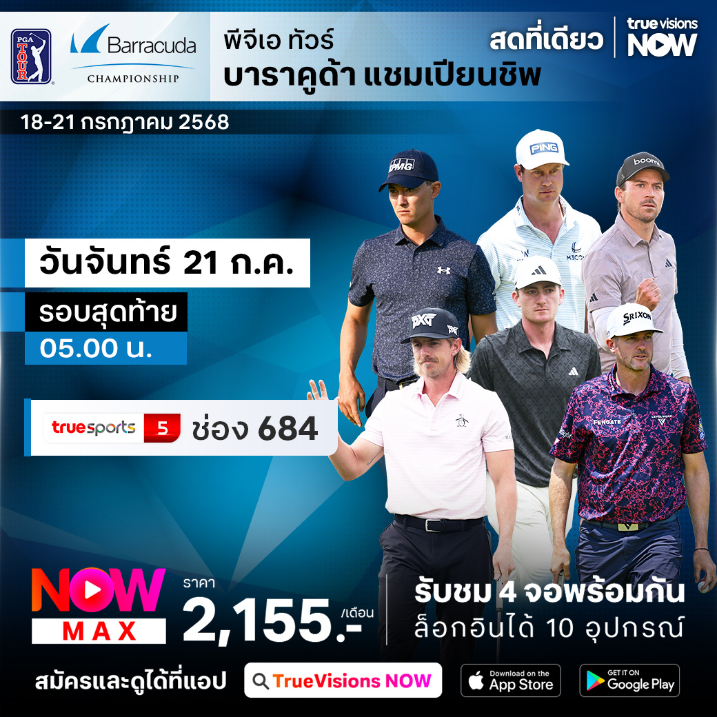 กอล์ฟ พีจีเอ ทัวร์ ยังคงเดินหน้าล่าความสำเร็จในฤดูกาล 2025 กันแบบต่อเนื่อง สัปดาห์นี้ จะพาแฟนๆ ไปชมการแข่งขันรายการ บาร์ราคูด้า แชมเปี้ยนชิพ ที่สนาม ทาโฮ่ เมาน์เท่น คลับ (โอลด์ กรีนวู้ด) ในทรัคกี้ รัฐแคลิฟอร์เนีย สหรัฐอเมริกา โดยมีเงินรางวัลรวม 4,000,000 เหรียญสหรัฐฯ ใครจะพิชิตชัยและคว้าตำแหน่งแชมป์ปีนี้ไปครอง ชมสด เอ็กซ์คลูซีฟ ตั้งแต่รอบแรกถึงรอบสุดท้าย ที่เดียวที่ ทรูวิชั่นส์