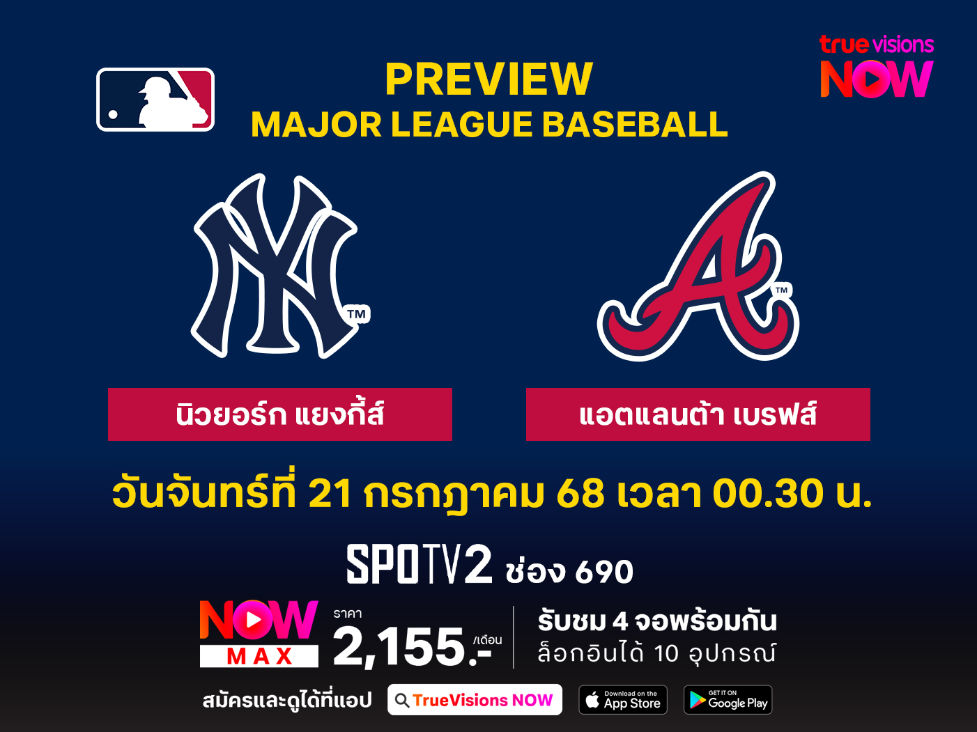 MLB เมเจอร์ลีก เบสบอล ถ่ายทอดสดทางแอพพลิเคชั่น ทรูวิชันส์นาว SPOTV2 (690)