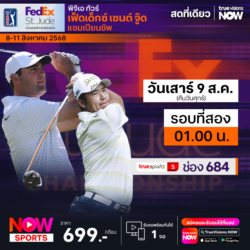 ในสัปดาห์นี้ ชมสด เอ็กซ์คลูซีฟ ครบทุกรอบ จากสนาม ทีพีซี เซาธ์วินด์ เมมฟิส รัฐเทนเนสซี่ ประเทศสหรัฐอเมริกา กับเงินรางวัลรวมมากถึง 20,000,000 เหรียญสหรัฐฯ ที่ทรูวิขั่นส์ ที่เดียว