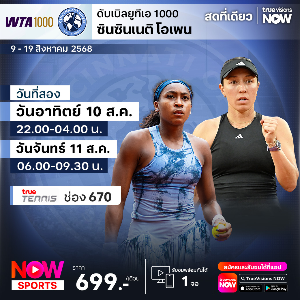 เทนนิสหญิง ดับเบิ้ลยูทีเอ ทัวร์ สัปดาห์นี้ยังเป็นรายการใหญ่ ระดับ WTA 1000 ในรายการ ซินซินแนติ โอเพ่น นักเทนนิสฝีมือระดับโลกยังคงเข้าร่วมแข่งขันกันอย่างต่อเนื่อง โดยรายการนี้เป็นการซ้อมใหญ่และเตรียมความพร้อมก่อนศึกแกรนด์สแลมสุดท้ายของปี ใครจะคว้าแชมป์ในรายการนี้ไปครอง ชมสด ครบทุกรอบ ที่ทรูวิชั่นส์ ที่เดียว