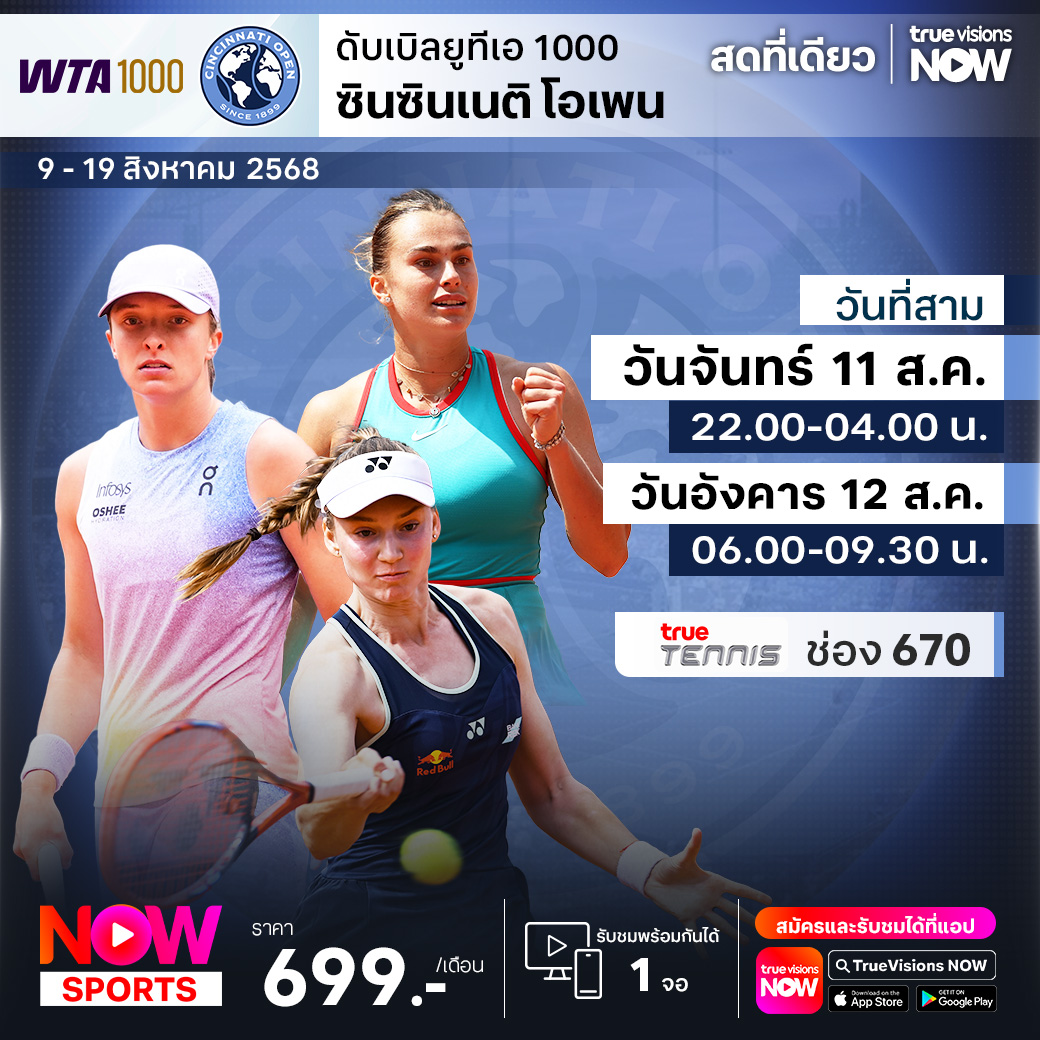 เทนนิสหญิง ดับเบิ้ลยูทีเอ ทัวร์ สัปดาห์นี้ยังเป็นรายการใหญ่ ระดับ WTA 1000 ในรายการ ซินซินแนติ โอเพ่น นักเทนนิสฝีมือระดับโลกยังคงเข้าร่วมแข่งขันกันอย่างต่อเนื่อง โดยรายการนี้เป็นการซ้อมใหญ่และเตรียมความพร้อมก่อนศึกแกรนด์สแลมสุดท้ายของปี ใครจะคว้าแชมป์ในรายการนี้ไปครอง ชมสด ครบทุกรอบ ที่ทรูวิชั่นส์ ที่เดียว