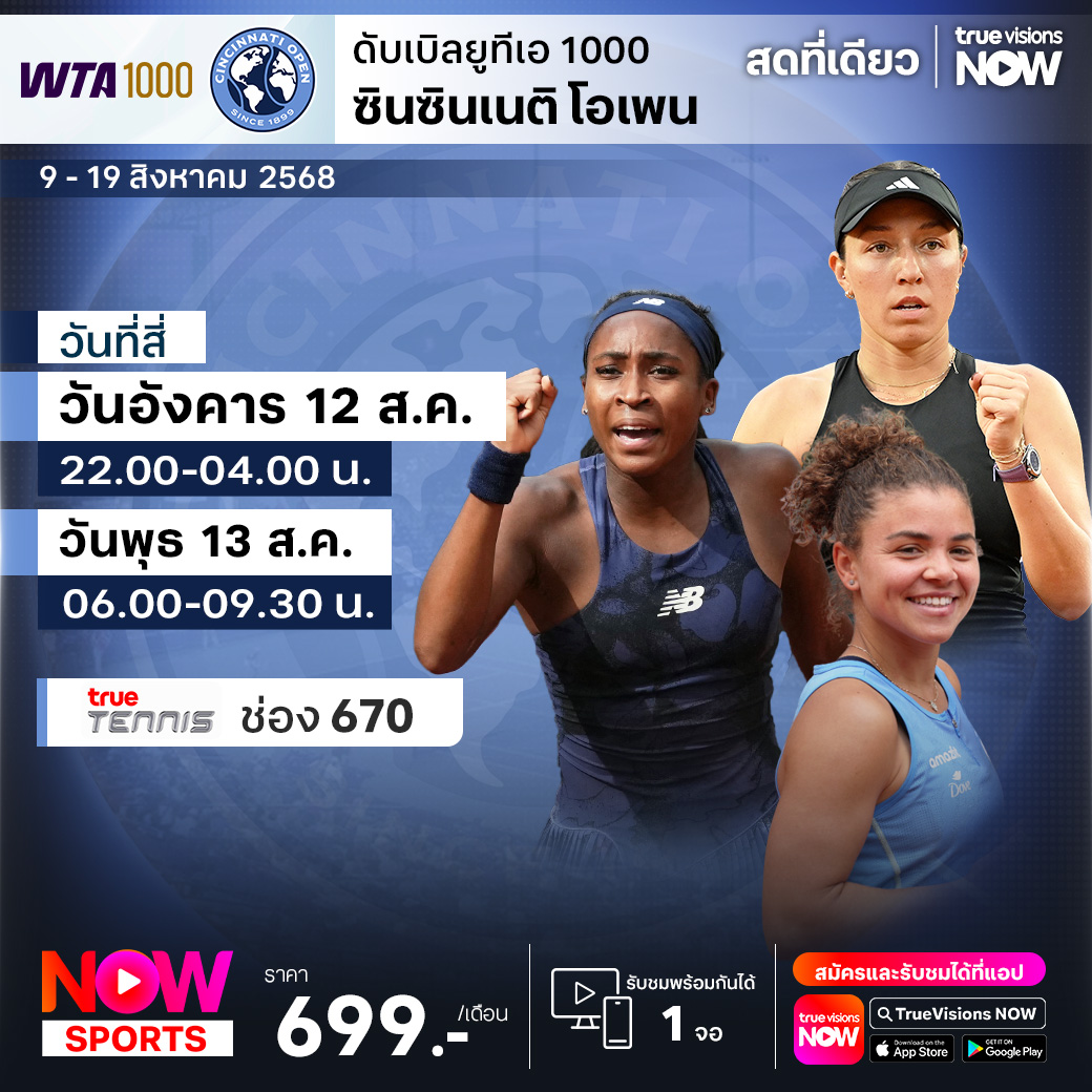 เทนนิสหญิง ดับเบิ้ลยูทีเอ ทัวร์ สัปดาห์นี้ยังเป็นรายการใหญ่ ระดับ WTA 1000 ในรายการ ซินซินแนติ โอเพ่น นักเทนนิสฝีมือระดับโลกยังคงเข้าร่วมแข่งขันกันอย่างต่อเนื่อง โดยรายการนี้เป็นการซ้อมใหญ่และเตรียมความพร้อมก่อนศึกแกรนด์สแลมสุดท้ายของปี ใครจะคว้าแชมป์ในรายการนี้ไปครอง ชมสด ครบทุกรอบ ที่ทรูวิชั่นส์ ที่เดียว