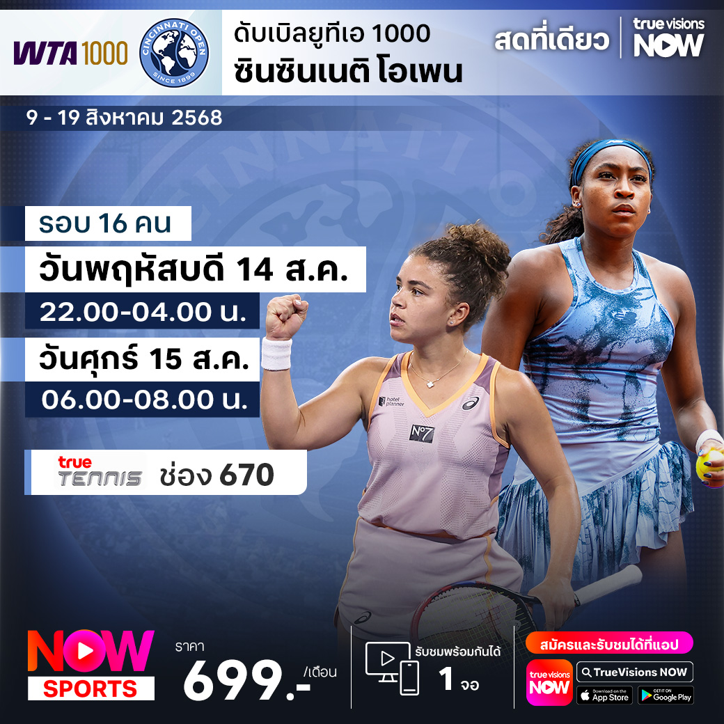 เทนนิสหญิง ดับเบิ้ลยูทีเอ ทัวร์ สัปดาห์นี้ยังเป็นรายการใหญ่ ระดับ WTA 1000 ในรายการ ซินซินแนติ โอเพ่น นักเทนนิสฝีมือระดับโลกยังคงเข้าร่วมแข่งขันกันอย่างต่อเนื่อง โดยรายการนี้เป็นการซ้อมใหญ่และเตรียมความพร้อมก่อนศึกแกรนด์สแลมสุดท้ายของปี ใครจะคว้าแชมป์ในรายการนี้ไปครอง ชมสด ครบทุกรอบ ที่ทรูวิชั่นส์ ที่เดียว