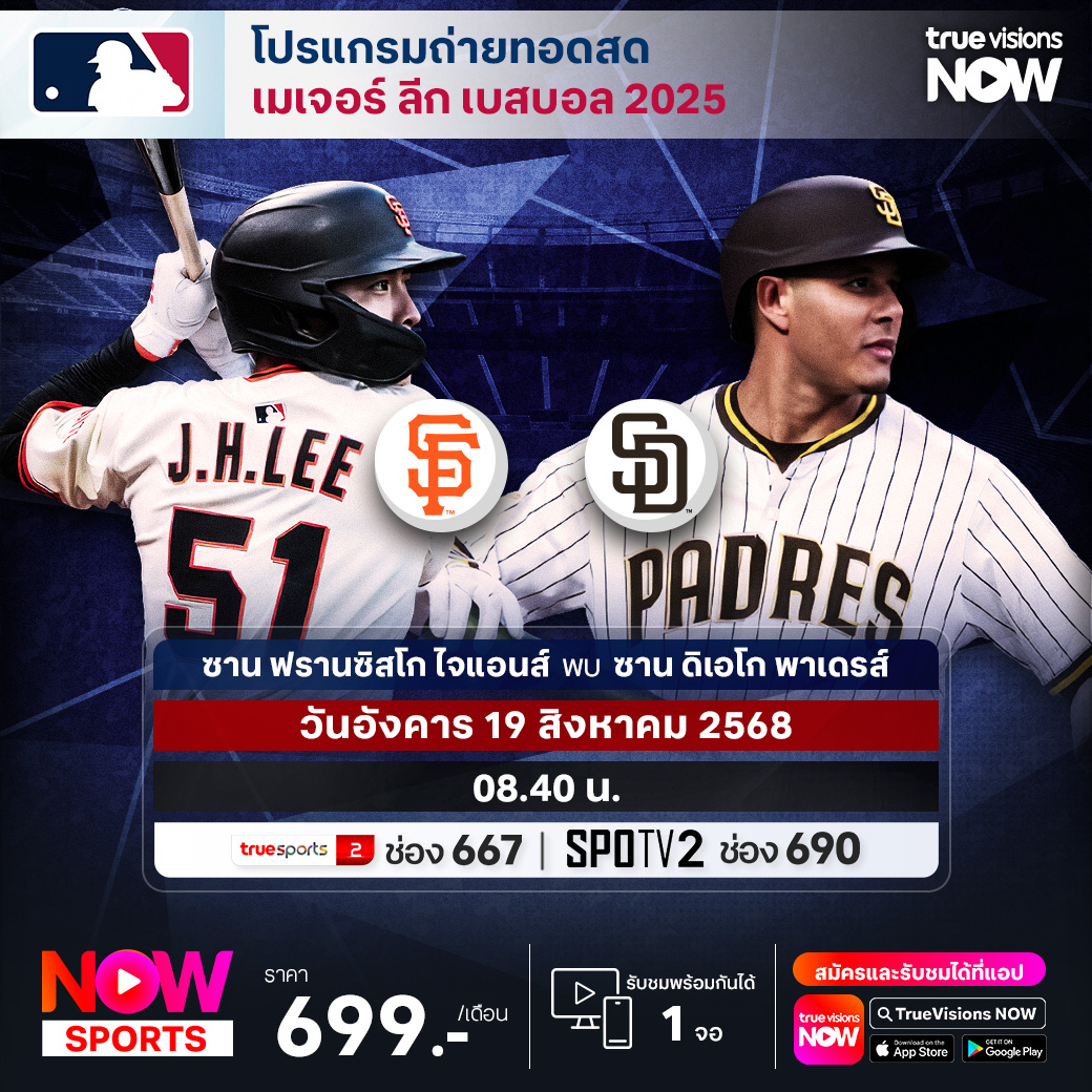 San Francisco Giants Vs San Diego Padres เวลา 08.40 ทางช่อง TS 2 (667) / SPORTV2 (690)