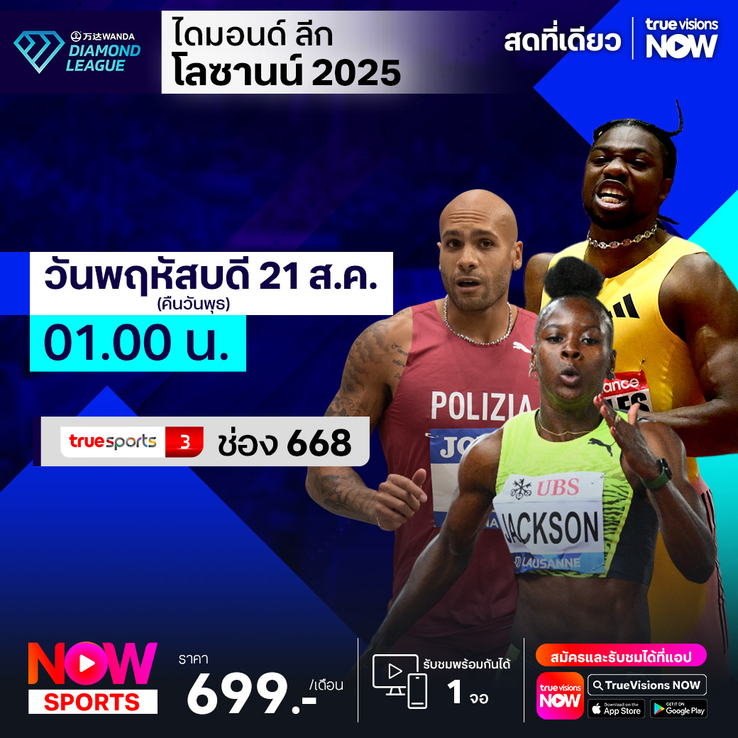 กรีฑา ไดมอนด์ ลีก 2025 เวทีระดับโลกของนักกรีฑาระดับท็อปๆ ของโลกทั้งประเภทลู่และประเภทลาน ที่มาพร้อมกับสถิติและผลงานอันน่าทึ่ง มีทั้งแชมป์ระดับทวีป, แชมป์โลก และ แชมป์โอลิมปิก สัปดาห์นี้ ไปกันที่เมืองโลซานน์ ประเทศสวิตเซอร์แลนด์ นำโดยเจ้าลมกรดอย่าง โนอาห์ ไลส์, เชอริก้า แจ็คสัน, คิเชน ธอมป์สัน และอีกมากมาย ชมสด เอ็กซ์คลูซีฟ ที่เดียวที่ ทรูวิชั่นส์