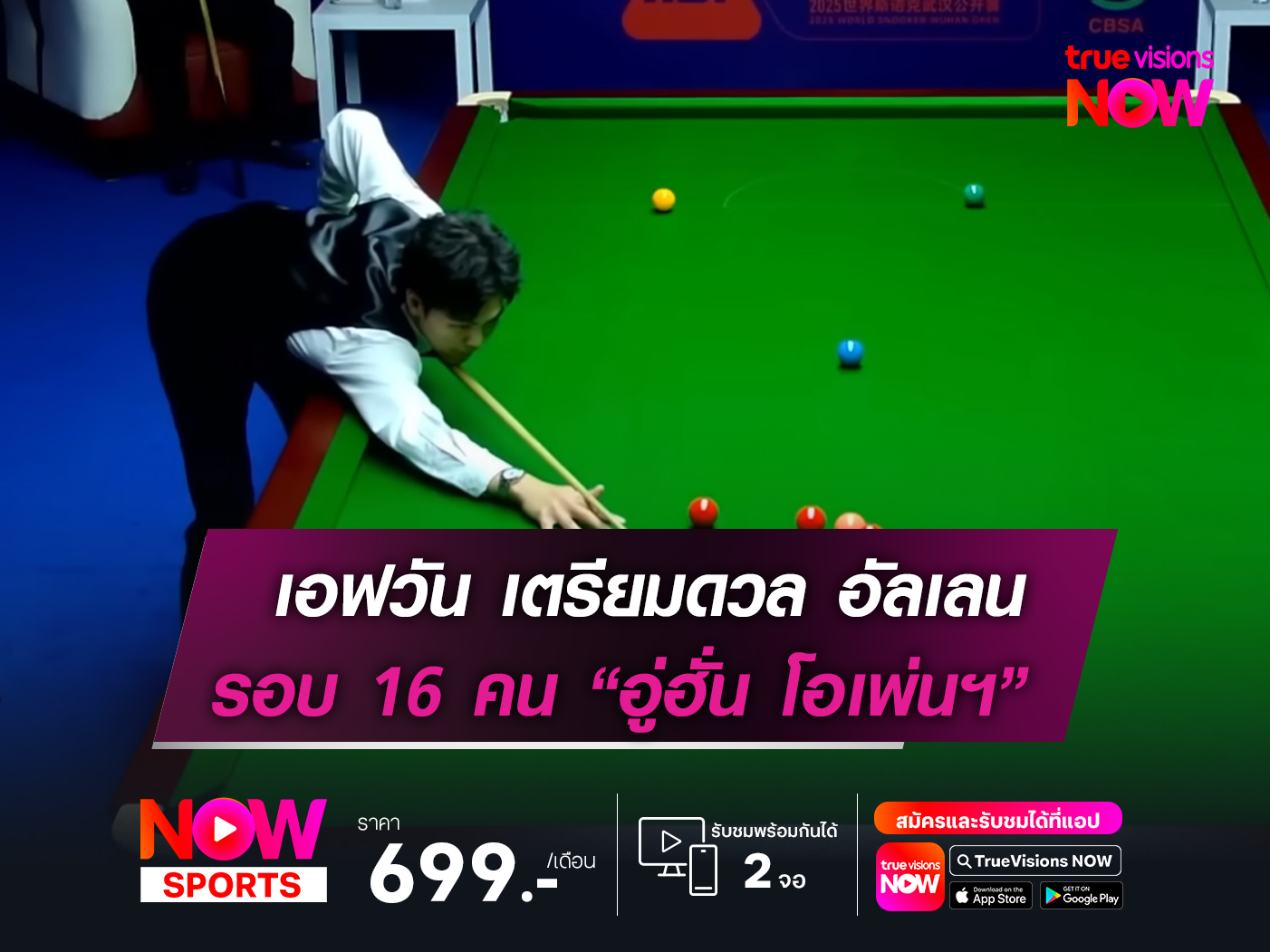 ศึกใหญ่สนุกเกอร์ "อู่ฮั่น โอเพ่น 2025"! "เอฟวัน" เทพไชยา อุ่นหนู ตัวแทนหนึ่งเดียวของไทย ดวลคิวเดือด มาร์ค อัลเลน มือ 11 ของโลกจากไอร์แลนด์เหนือ รอบ 16 คนสุดท้าย