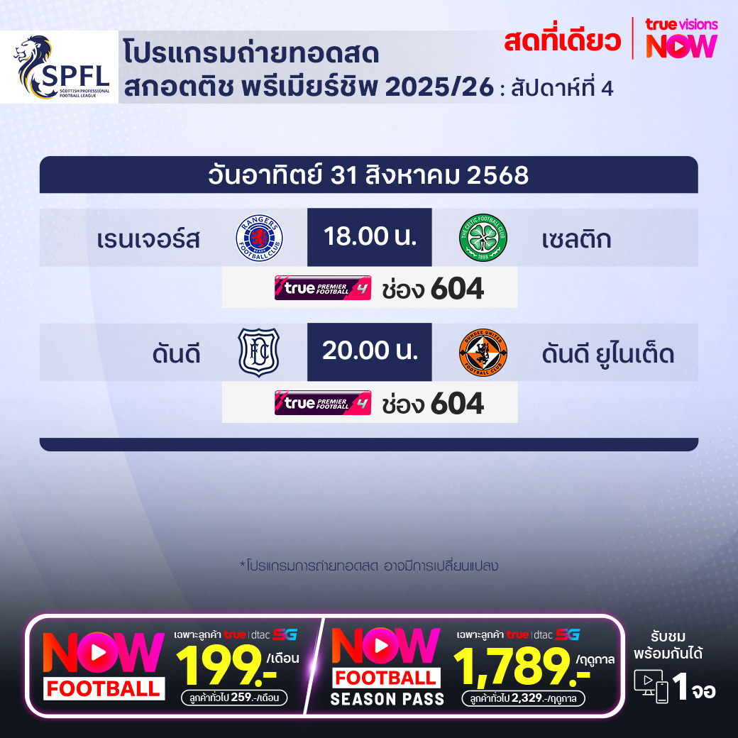 Rangers vs Celtic เวลา 18.00-20.00 ทางช่องTPF 4(604)