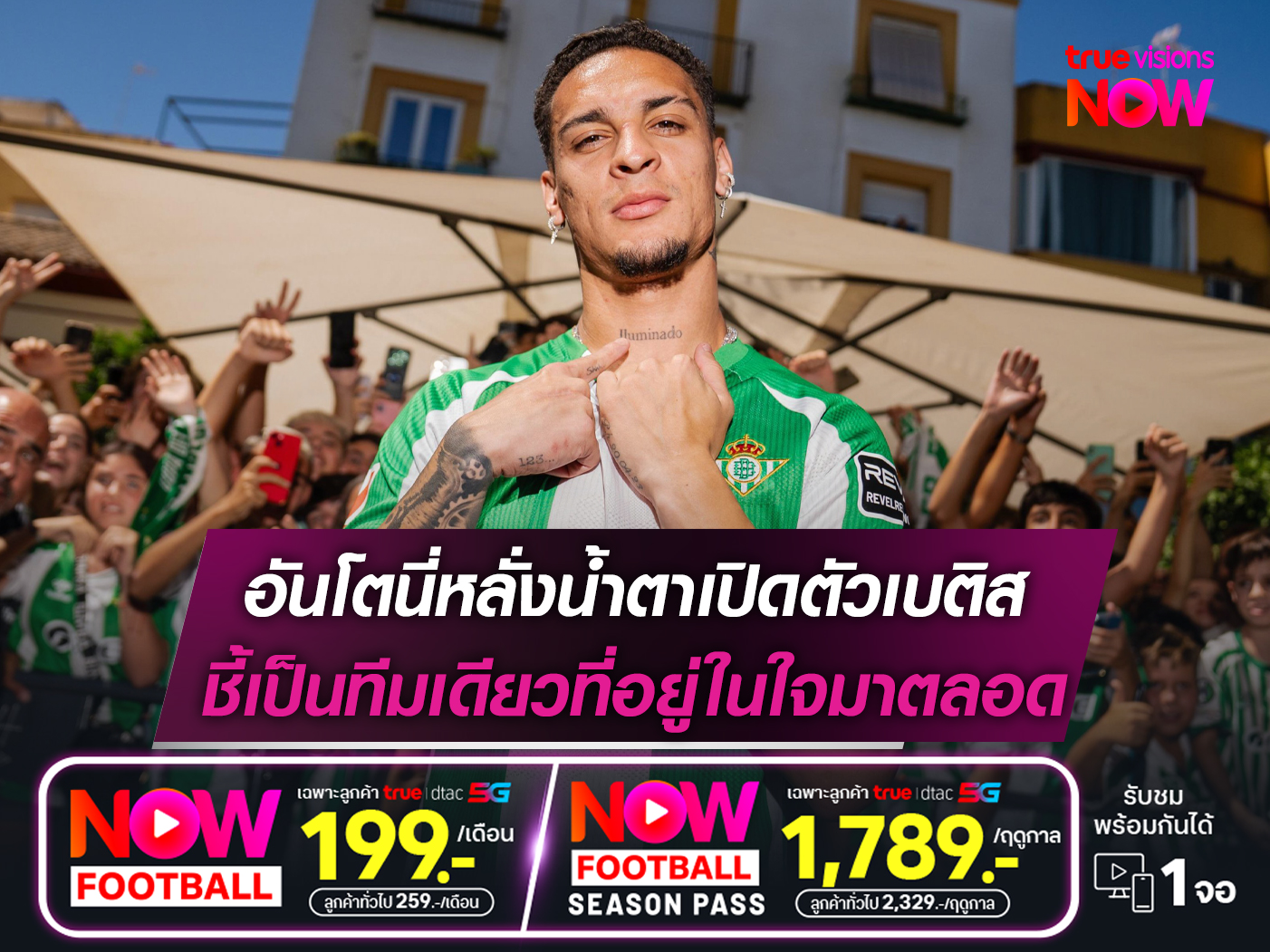 อันโตนี่ ปีกทีมชาติบราซิลที่เพิ่งย้ายจาก แมนฯ ยูไนเต็ด กลับมาที่ เรอัล เบติส ในศึก ลา ลีกา สเปน อีกครั้ง ถึงกับหลั่งน้ำตาขณะแถลงข่าวเปิดตัวกับทีมใหม่อย่างเป็นทางการ พร้อมกับเผยว่า เบติส เป็นตัวเลือกเดียวของเขามาโดยตลอด นอกจากนี้เขายังได้เผยถึงความยากลำบากที่ต้องเผชิญในช่วงท้ายอาชีพกับทีมปีศาจแดงอีกด้วย