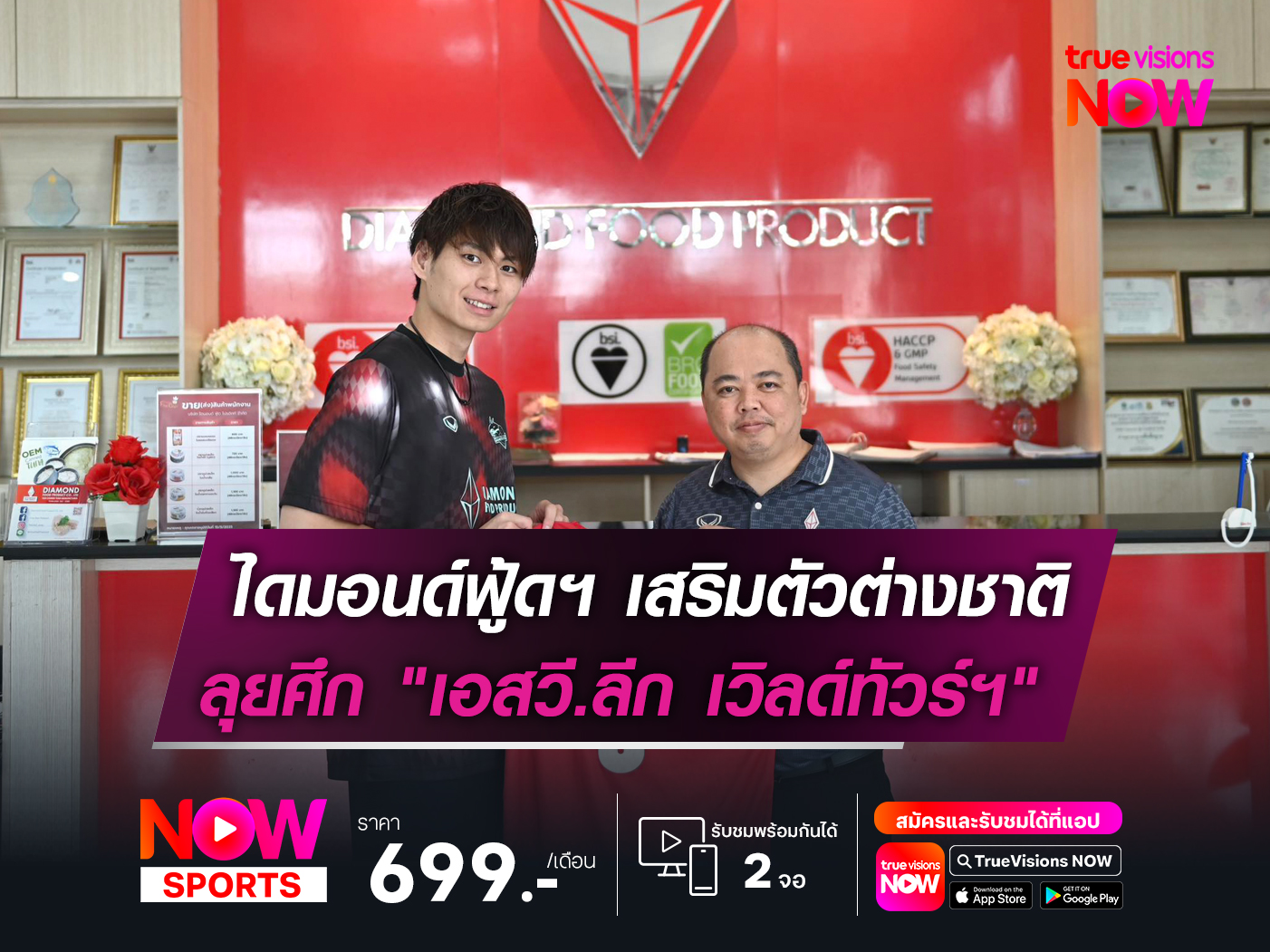ไดมอนด์ฟู้ด ไฟน์เชฟ สมุทรสาคร จะลงสนาม 2 นัด ในการแข่งขัน "เอสวี ลีก เวิลด์ ทัวร์ 2025 อิน ไทยแลนด์" โดยพบกับ โทเรย์ แอร์โรว์ ชิซูโอกะ ในวันที่ 12 กันยายน และพบกับ โอซาก้า บลูเทออน ในวันที่ 13 กันยายน ถ่ายทอดสดทาง Truevisions Now