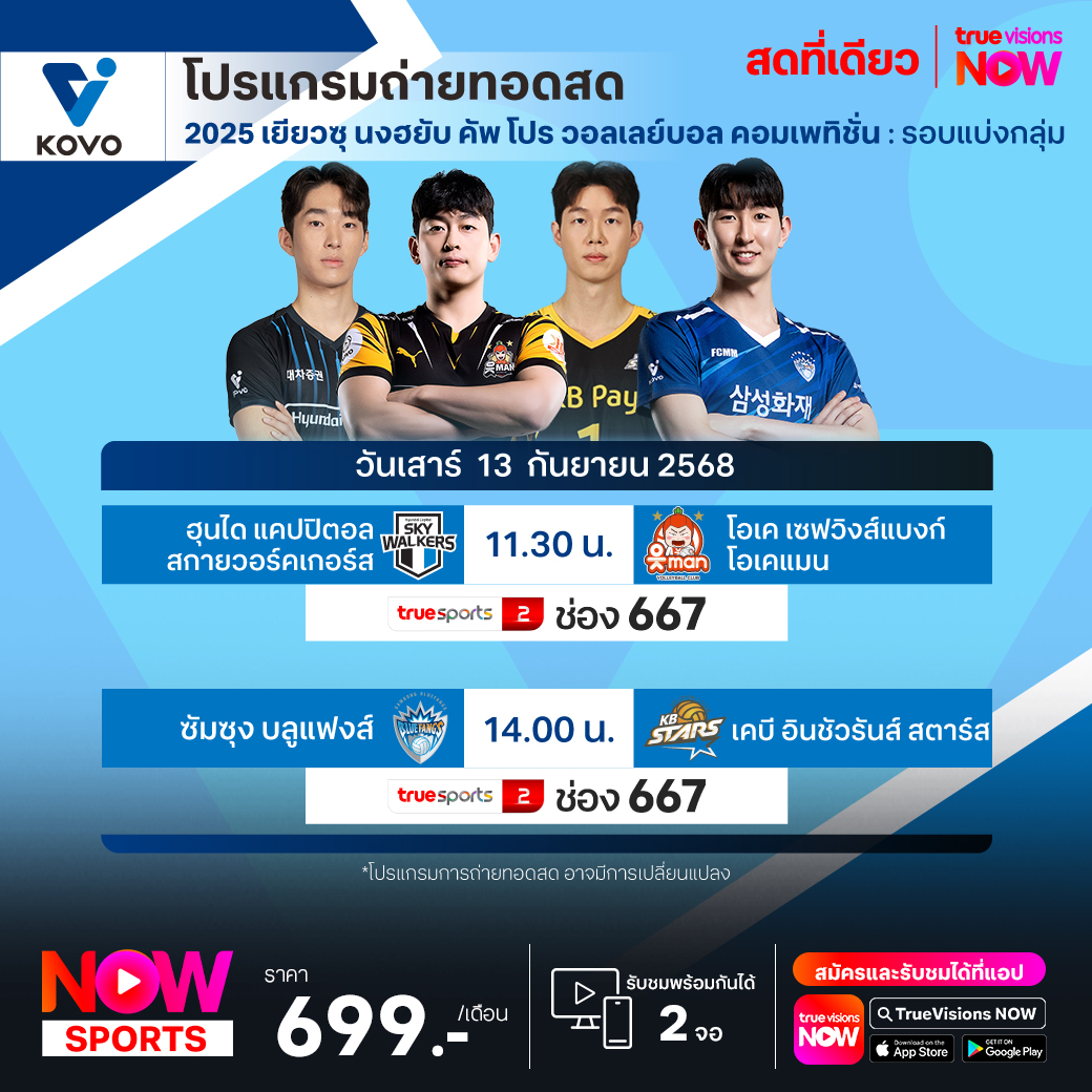 Hyundai Skywalkers Vs OK Savingsbank เวลา 11.30 ทางช่อง TS 2 (667)