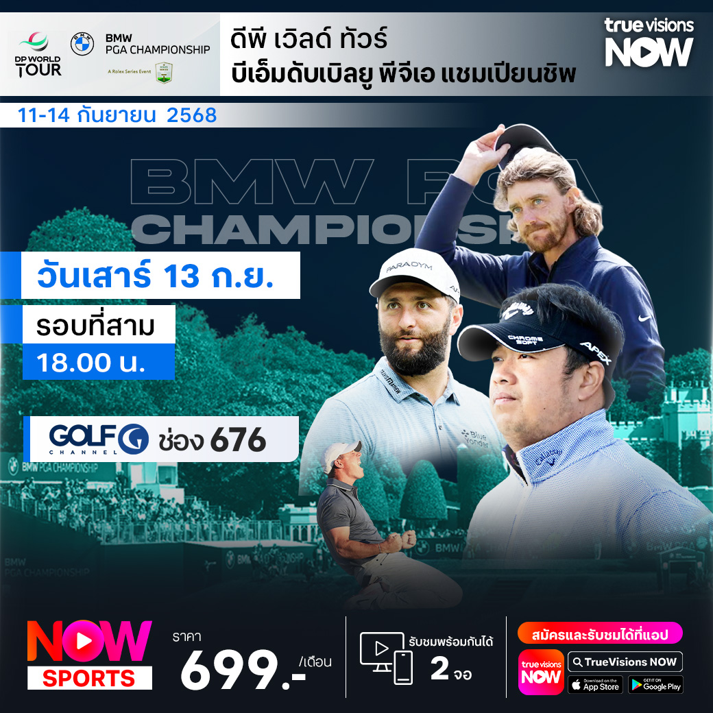 กอล์ฟ ดีพี เวิลด์ ทัวร์ กับรายการที่แฟนๆ ต้องไม่พลาด สัปดาห์นี้พบกับ บีเอ็มดับเบิ้ลยู พีจีเอ แชมเปี้ยนชิพ ที่เป็นหนึ่งใน โรเล็กซ์ ซีรี่ส์ บรรดามือระดับท็อปของโลกต่างนัดกันมาดวลวงสวิงและลุ้นตำแหน่งแชมป์อันทรงเกียรติกันอย่างคับคั่ง ที่สนาม เวนท์เวิร์ธ คลับ ในเวอร์จิเนีย วอเทอร์ เมืองเซอร์เรย์ ประเทศอังกฤษ ชิงเงินรางวัลรวมมหาศาล 9,000,000 เหรียญสหรัฐฯ ชมสด ครบทุกรอบ ที่ ทรูวิชั่นส์