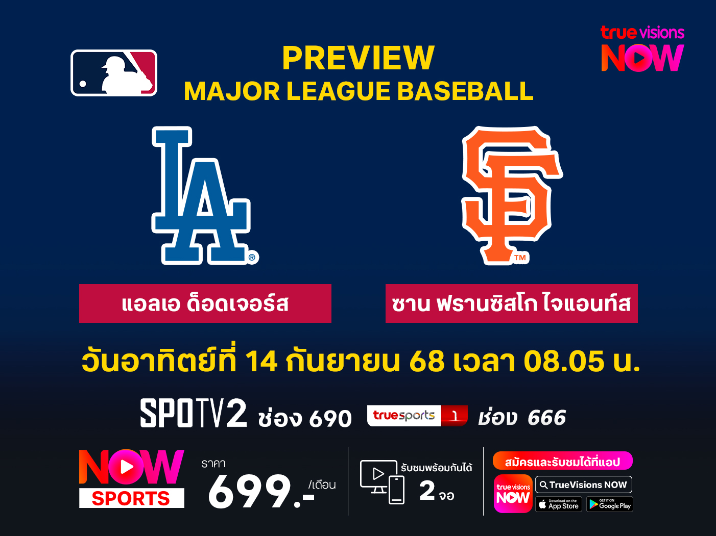 MLB เมเจอร์ลีก เบสบอล ถ่ายทอดสดทางแอพพลิเคชั่น ทรูวิชันส์นาว SPOTV2 (690)