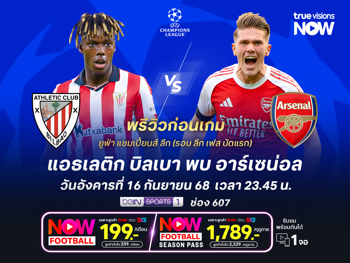 ศึก ยูฟ่า แชมเปี้ยนส์ ลีก 2025-26 รอบ ลีก เฟส นัดแรก แอธเลติก บิลเบา จากสเปน จะเล่นที่ ซาน มาเมส รับการมาเยือนของ อาร์เซน่อล จากอังกฤษ โดยเกมนี้ บิลเบา เจ้าถิ่น มีปัญหาตัวเจ็บพอสมควร โดยเฉพาะอย่างการขาดหายไปของ นิโก้ วิลเลียมส์ น่าจะส่งผลไม่น้อย ขณะที่ อาร์เซน่อล แม้จะมีปัญหานักเตะบาดเจ็บเช่นกัน แต่ตัวอื่นที่ลงเล่นยังสามารถทดแทนได้ดี รวมถึงฟอร์มในภาพรวมก็ดูจัดจ้านมากกว่า มีลุ้นบุกมาถึงชนะได้เลยในเกมนี้