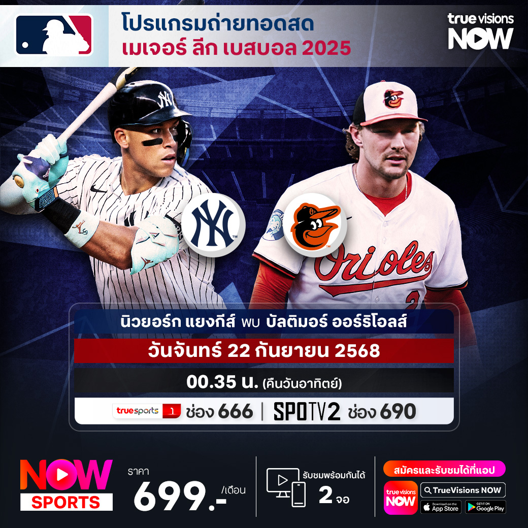 New York Yankees Vs Baltimore Orioles เวลา 00.35 ทางช่อง TS 1 (666) /SPOTV2 (690)