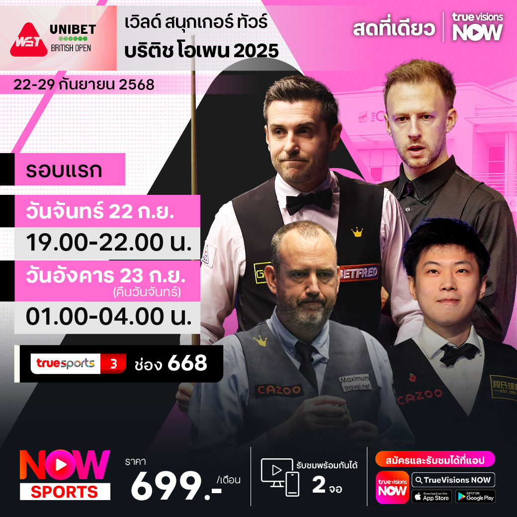 ศึกสนุกเกอร์เก็บคะแนนสะสมโลก สัปดาห์นี้ยังคงปักหลักในอังกฤษเป็นสัปดาห์ที่ 2 ติดต่อกัน กับรายการ บริติช โอเพ่น 2025 ปีนี้บรรดาสุดยอดนักสนุกเกอร์ชั้นนำของโลก ตบเท้ากันเข้าชิงชัยและลุ้นตำแหน่งชนะเลิศกันคับคั่ง 128 คน ที่ เชลต์นั่ม เรซคอร์ส ลุ้นระทึกกับการจับฉลากประกบคู่แข่งขันแบบเดียวกับฟุตบอลเอฟเอ คัพ ซึ่งจะไม่เหมือนรายการอื่น ๆ ชมสด ครบทุกรอบ ที่ ทรูวิชั่นส์
