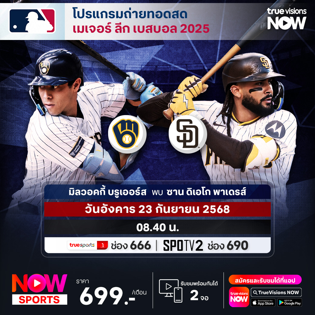 Milwaukee Brewers Vs San Diego Padres เวลา08.40 ทางช่อง TS 1 (666) /SPOTV2 (690)