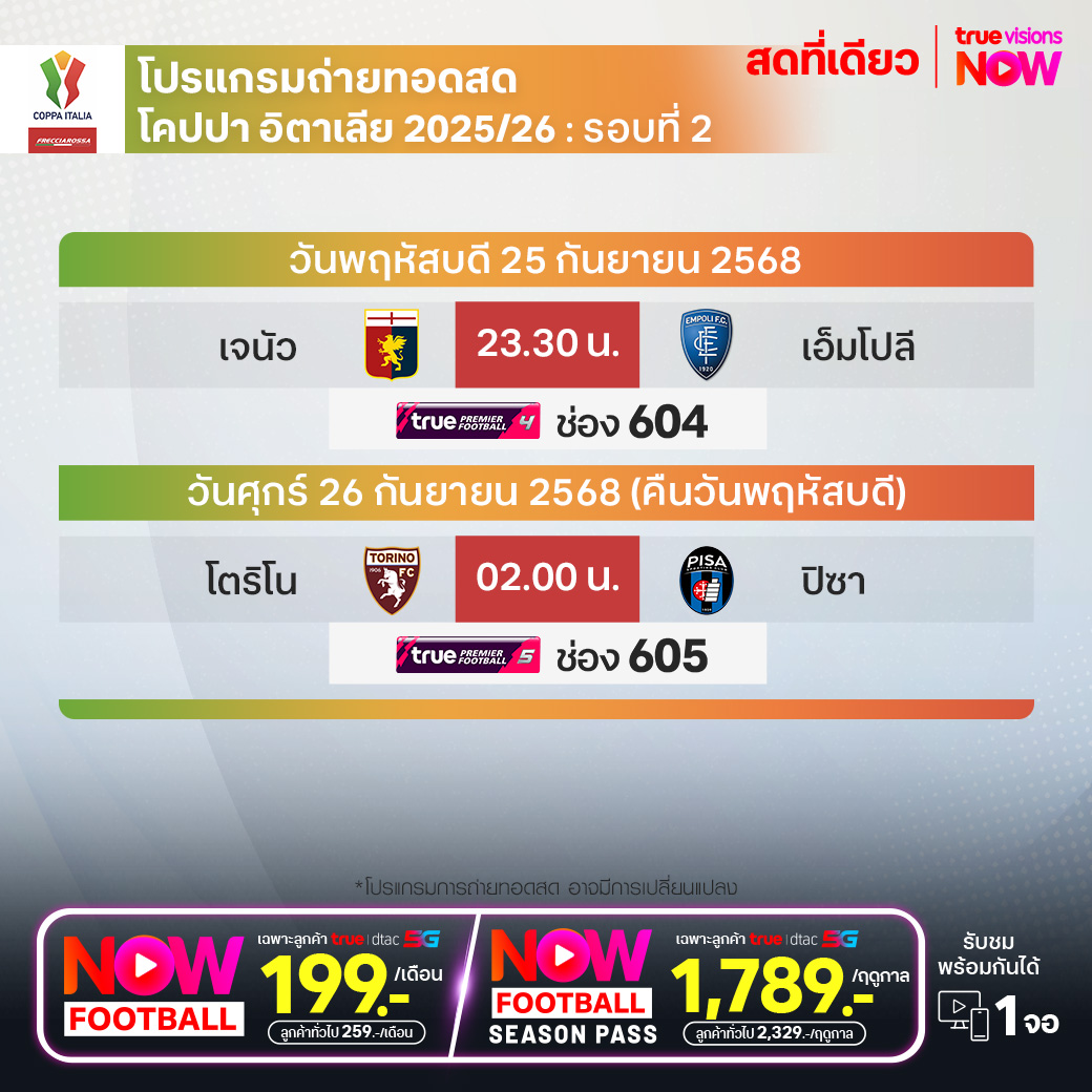 Torino vs Pisa เวลา 02.00-04.00 ทางช่องTPF 5(605)