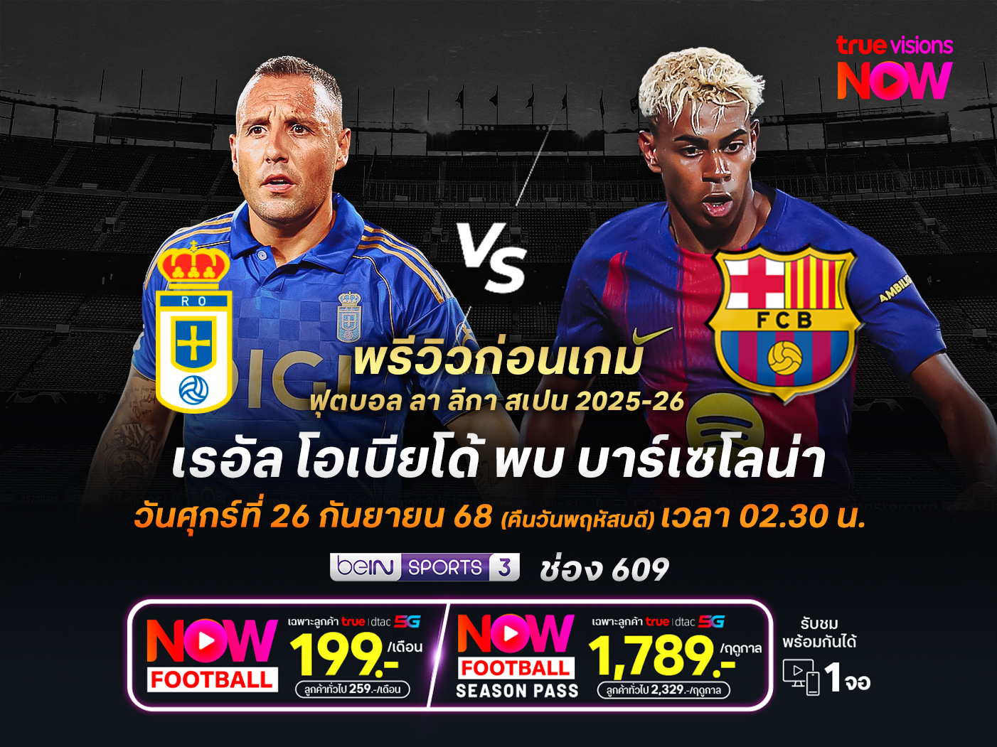 ศึก ลา ลีกา สเปน 2025-26 เรอัล โอเบียโด้ จะเล่นที่ เอสตาดิโอ การ์ลอส ตาร์เตียเร่ รับการมาเยือนของ บาร์เซโลน่า โดยเกมนี้ โอเบียโด้ เจ้าถิ่น มีผลงานที่ย่ำแย่อย่างมาก หลังแพ้ 4 จาก 5 เกมใน ลา ลีกา จนกลายเป็นทีมหนีตกชั้นเต็มตัวแล้ว ตรงข้ามกับ บาร์เซโลน่า ที่ยังไม่แพ้ใครจากการลงเล่น 6 เกมที่ผ่านมา และยังชนะไปถึง 5 เกม นั่นทำให้เกมนี้ยากเหลือเกินที่ โอเบียโด้ จะรอดพ้นจากความพ่ายแพ้ไปได้