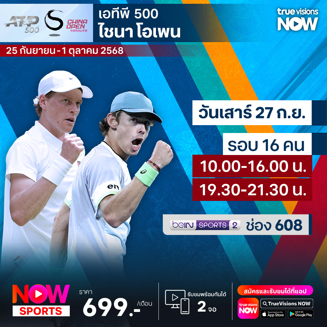 เทนนิสชาย เอทีพี ทัวร์ ช่วงการแข่งขัน Asian Swing ในสัปดาห์นี้มีรายการใหญ่อีกรายการที่กรุงปักกิ่ง ประเทศจีน กับรายการ ไชน่า โอพ่น นำโดย ยานนิค ซินเนอร์ แชมป์แกรนด์แสลม 2 รายการในปี 2025 ร่วมลุ้นกันว่าใครจะคว้าแชมป์ไปครอง ชมสด ครบทุกรอบ ที่ ทรูวิชั่นส์