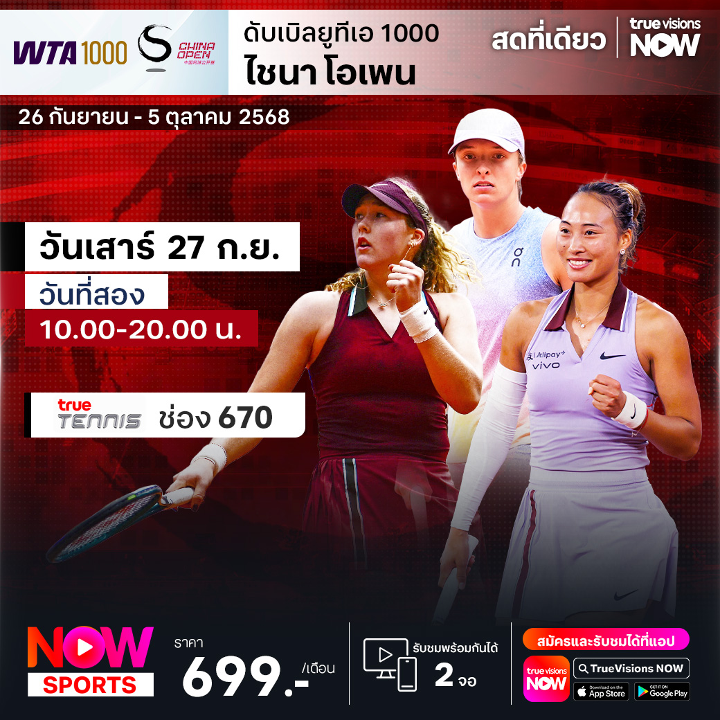 เทนนิสหญิง ดับเบิ้ลยูทีเอ ทัวร์ สัปดาห์นี้พบกับรายการใหญ่ที่สุดในทวีปเอเชีย ในรายการ ไชน่า โอเพ่น ที่กรุงปักกิ่ง ประเทศจีน นำโดยนักเทนนิสหญิงชื่อดังอย่าง อารีนา ซาบาเลนก้า และ อิกา ซิออนเทค ร่วมลุ้นกันว่าใครจะคว้าแชมป์รายการนี้ไปครอง ชมสด ครบทุกรอบ ที่ ทรูวิชั่นส์