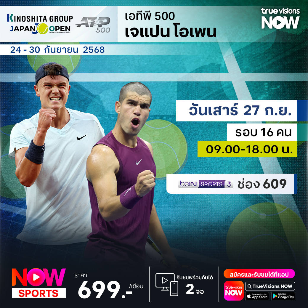 เทนนิสชาย เอทีพี ทัวร์ เข้าสู่ช่วงการแข่งขัน Asian Swing สัปดาห์นี้พบกับรายการใหญ่ที่กรุงโตเกียว ประเทศญี่ปุ่น กับรายการ เจแปน โอเพ่น นำโดย คาร์ลอส อัลคาราซ แชมป์แกรนด์แสลม 2 รายการในปี 2025 ร่วมลุ้นกันว่าใครจะคว้าแชมป์รายการนี้ไปครอง ชมสด ครบทุกรอบ ที่ ทรูวิชั่นส์