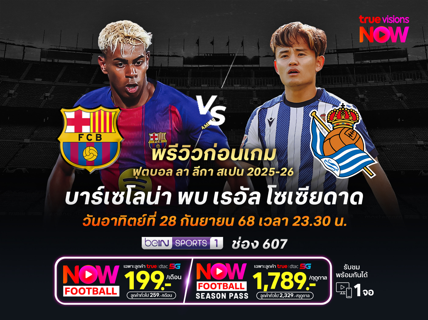 ศึก ลา ลีกา สเปน 2025-26 บาร์เซโลน่า จะเล่นที่ เอสตาดิโอ โอลิมปิก เด มอนต์จูอิก รับการมาเยือนของ เรอัล โซเซียดาด โดยเกมนี้ บาร์ซ่า เจ้าถิ่น กำลังอยู่ในฟอร์มที่เข้าฝักสุดๆ ยังไม่แพ้ใครเลยนับตั้งแต่เปิดฤดูกาล ชนะไป 6 จาก 7 เกม เกมนี้พวกเขาต้องการ 3 แต้มเป็นอย่างมาก เพื่อแซง เรอัล มาดริด ขึ้นจ่าฝูง ขณะที่ เรอัล โซเซียดาด ฟอร์มไม่ดีเอาเสียเลย แม้เกมล่าสุดจะชนะเป็นแล้วแต่การมาเยือน บาร์เซโลน่า ยังยากที่จะเอาตัวรอดกลับออกไปได้