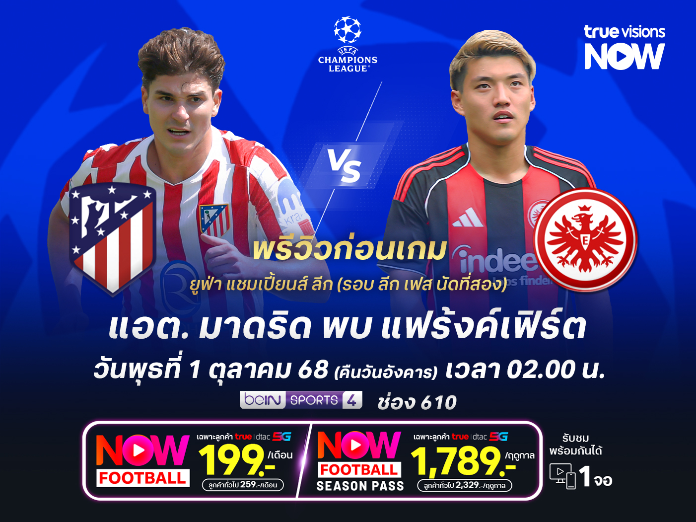 ศึก ยูฟ่า แชมเปี้ยนส์ ลีก 2025-26 รอบ ลีก เฟส นัดที่สอง แอตเลติโก มาดริด จากสเปน จะเล่นที่ เอสตาดิโอ เมโตรโปลิตาโน่ รับการมาเยือนของ ไอน์ทรัค แฟร้งค์เฟิร์ต จากเยอรมนี โดยเกมนี้ แอต. มาดริด เจ้าถิ่น กำลังอยู่ในฟอร์มที่ยอดเยี่ยม หลังเปิดรังถล่ม เรอัล มาดริด ได้ 5-2 ในเกม ลา ลีกา นัดล่าสุด ขณะที่ แฟร้งค์เฟิร์ต ก็ไม่ธรรมดา ชนะ 5 จาก 7 เกมรวมทุกรายการ แถมเกมรุกยังคมกริบ ซัดไปแล้วถึง 27 ประตูจาก 7 นัด ทำให้เกมนี้พวกเขาก็หวังจะบุกไปแบ่งแต้มกลับออกมาเช่นกัน