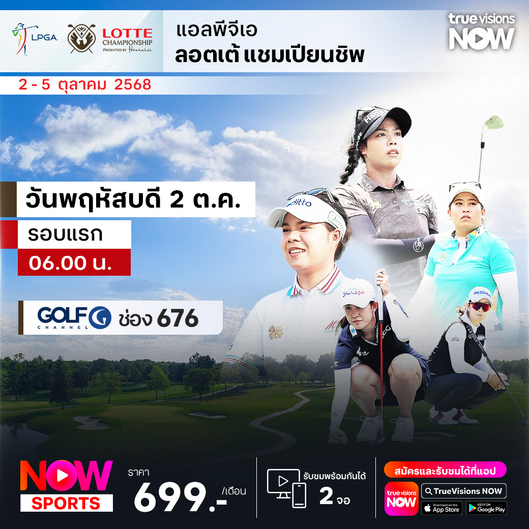 กอล์ฟหญิง แอลพีจีเอ ทัวร์ สัปดาห์นี้ บรรดาสุดยอดโปรสาวชั้นนำของโลกไปรวมตัวกันที่ฮาวาย กับบรรยากาศสบายๆ และทิวทัศน์ที่สวยงามของการแข่งขันในรายการ ล็อตเต้ แชมเปี้ยนชิพ 2025 ณ สนาม โฮอาคาไล คันทรี่ คลับ ในเอวา บีช โออาฮู รัฐฮาวาย นอกจากลุ้นแชมป์และคะแนนสะสมใน เรซ ทู ซีเอ็มกรุ๊ป แล้ว ยังมีเงินรางวัลมากถึง 3,000,000 เหรียญสหรัฐฯ ส่งใจเชียร์โปรสาวไทยลุ้นแชมป์กับคู่แข่งระดับพระกาฬ ชมสด ครบทุกรอบ ที่ ทรูวิชั่นส์